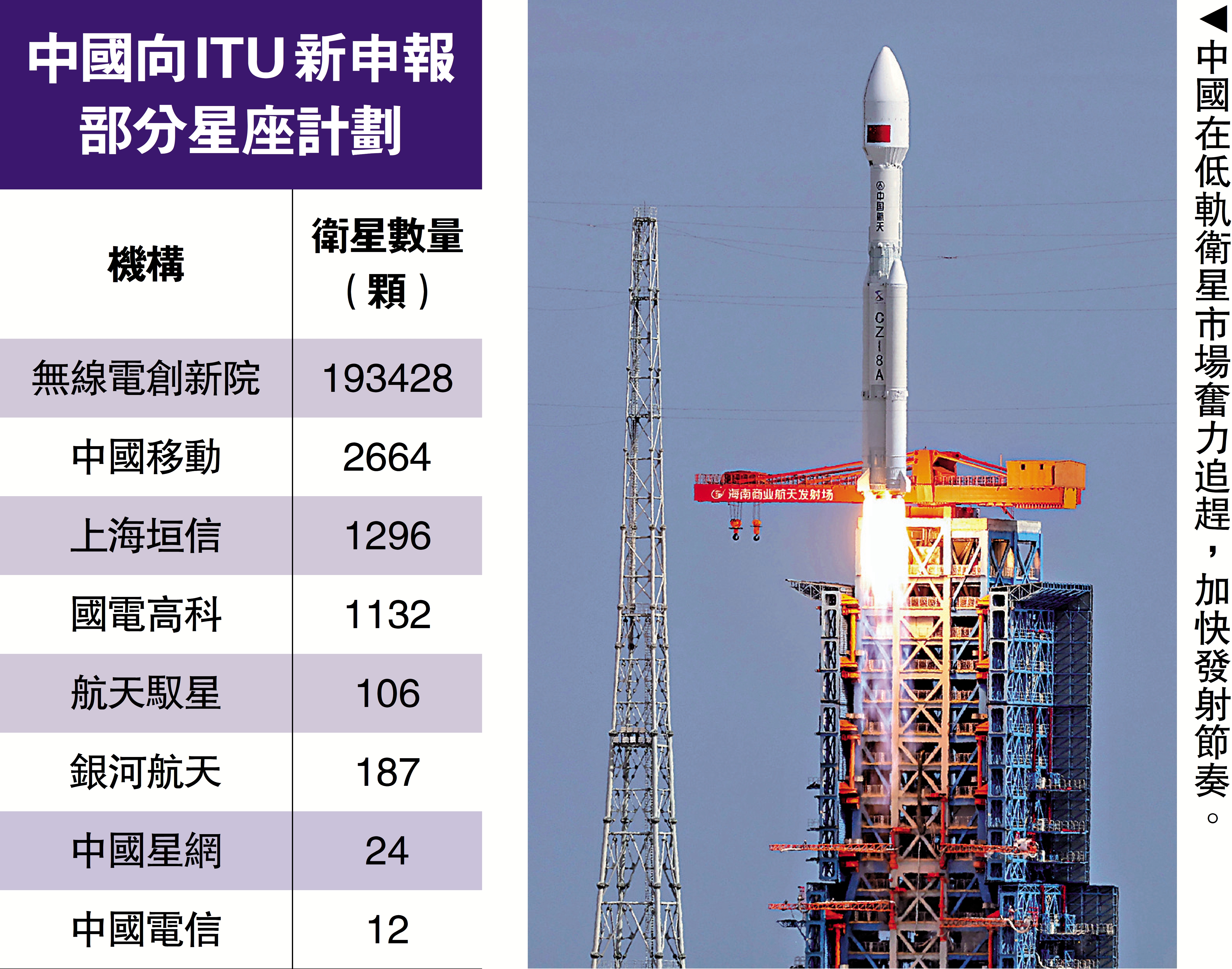 中國企業在低軌衛星市場奮力追趕,加快發射節奏,隨着衛星生產加速和研發可重用的火箭,有助降低發射成本,在衛星互聯網市場有力與星鏈比拼。