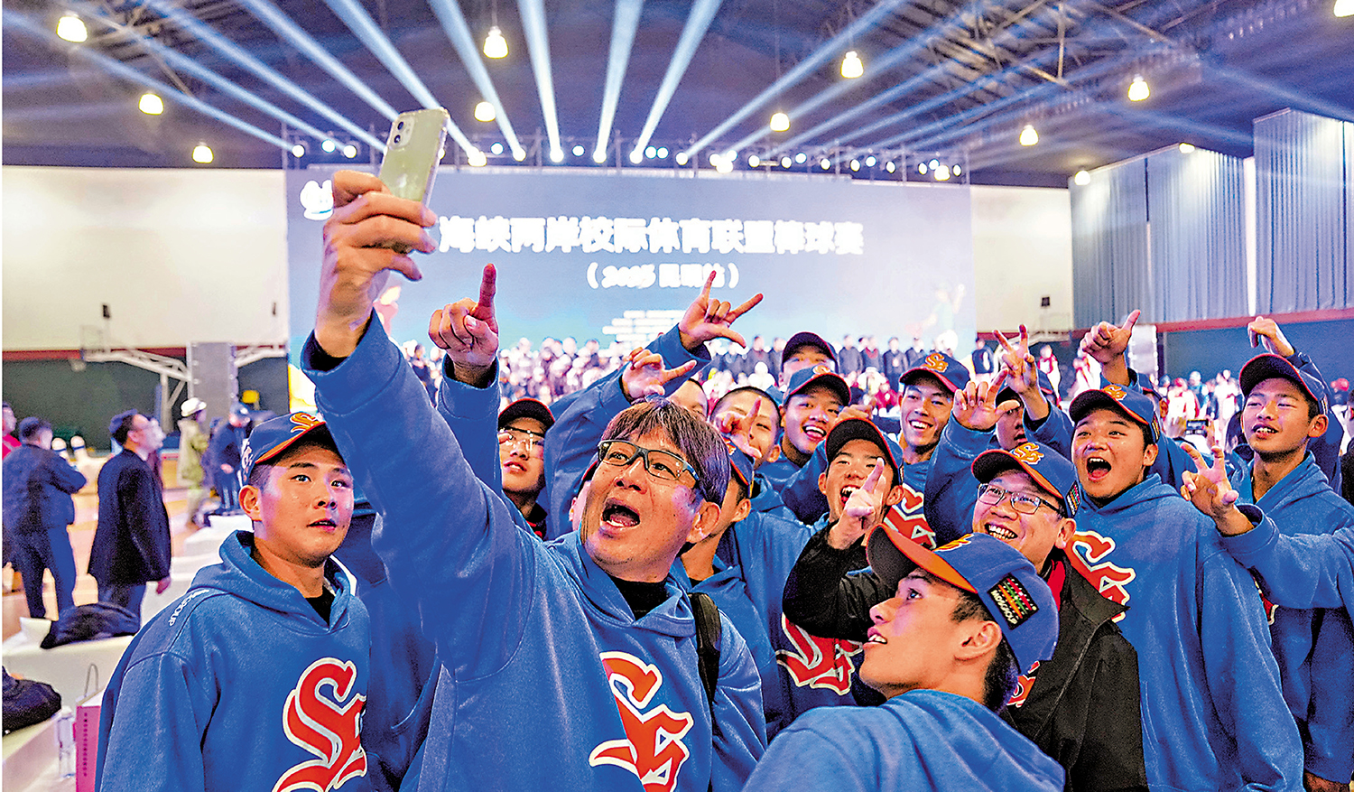兩岸校際體育聯盟棒球賽日前在雲南昆明開幕。圖為台灣參賽隊伍自拍留念。\中新社