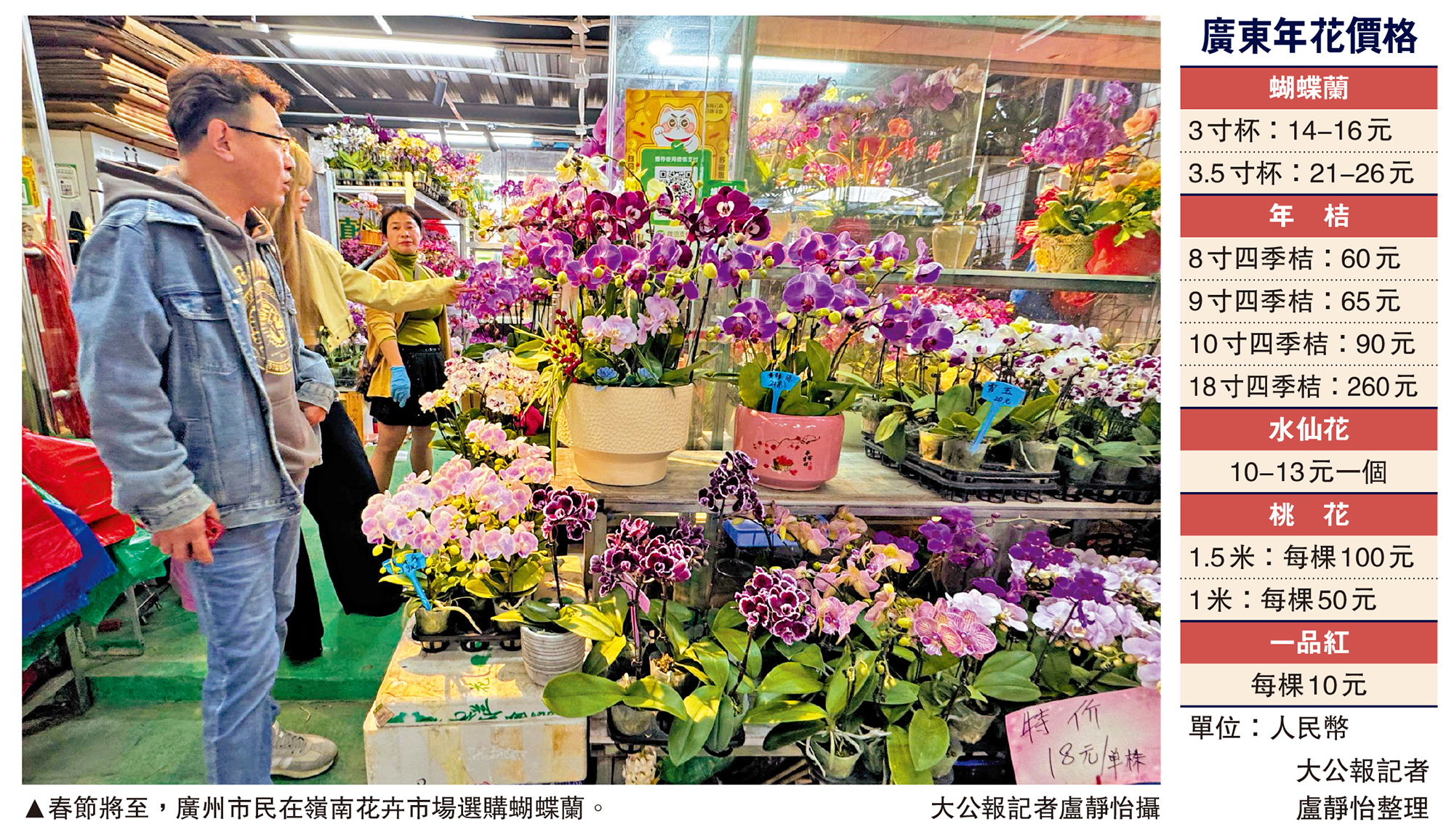 多位商戶告訴記者,今年春節年花整體「又平又靚」,不少供港年花基地提前出現「爆單」情況。針對香港家庭戶型較小的特點,部分基地專門培育小盆、小株年花,銷量理想。除批發商集中下單外,香港客戶以「團購」方式線上採購年花,亦成為新趨勢。\大公報記者 盧靜怡廣州報道