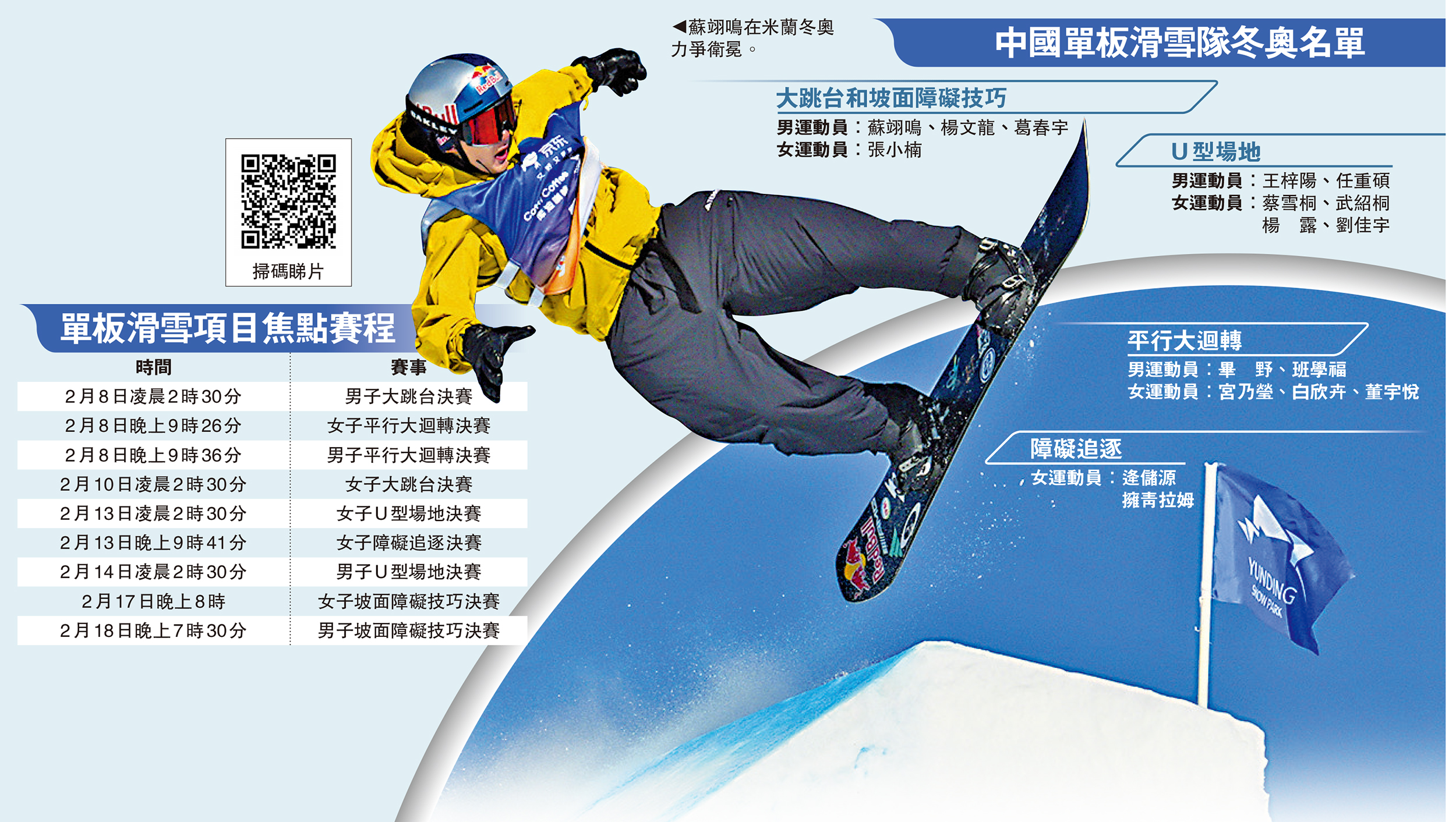談到以爭取衛冕冠軍身份來到米蘭冬奧賽場,蘇翊鳴說:「我不會給自己太多壓力,現在我專注的就是做好自己,做好每一件事情、每一個動作,更加專注於比賽本身,並不會有太多標籤在身上。還是好好享受這場比賽,好好享受自己的第2次奧運經歷,希望發揮出應有的水平。」