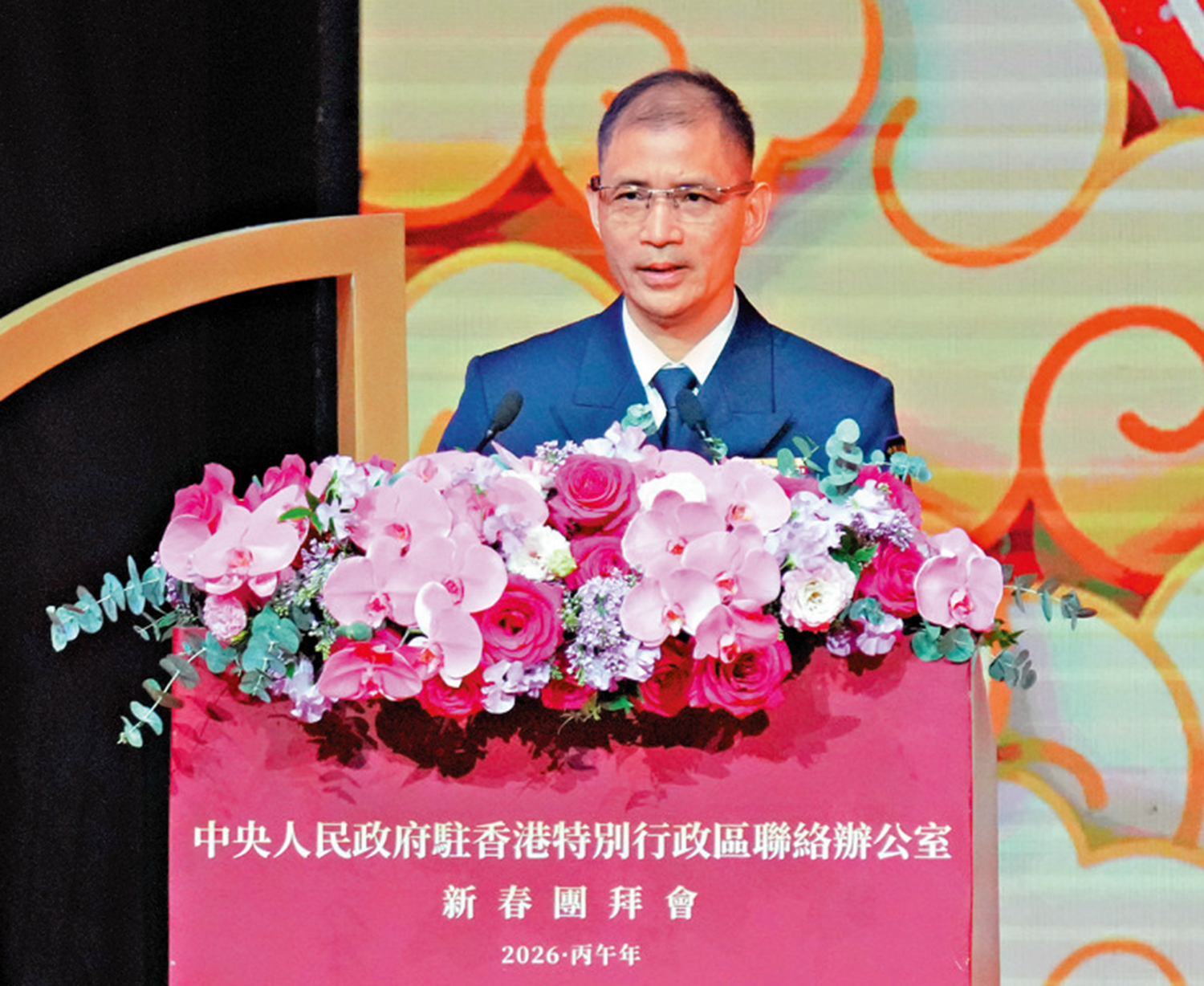 中國人民解放軍駐香港部隊副司令員譚志偉致辭指出,過去一年在黨中央堅強領導和特區政府有力帶領下,香港由治及興邁出堅實步伐,國際金融、貿易、航運中心地位持續穩固,第八屆立法會選舉圓滿順利,北部都會區建設加速推進,民生改善成績亮眼,愛國愛港正能量不斷凝聚。