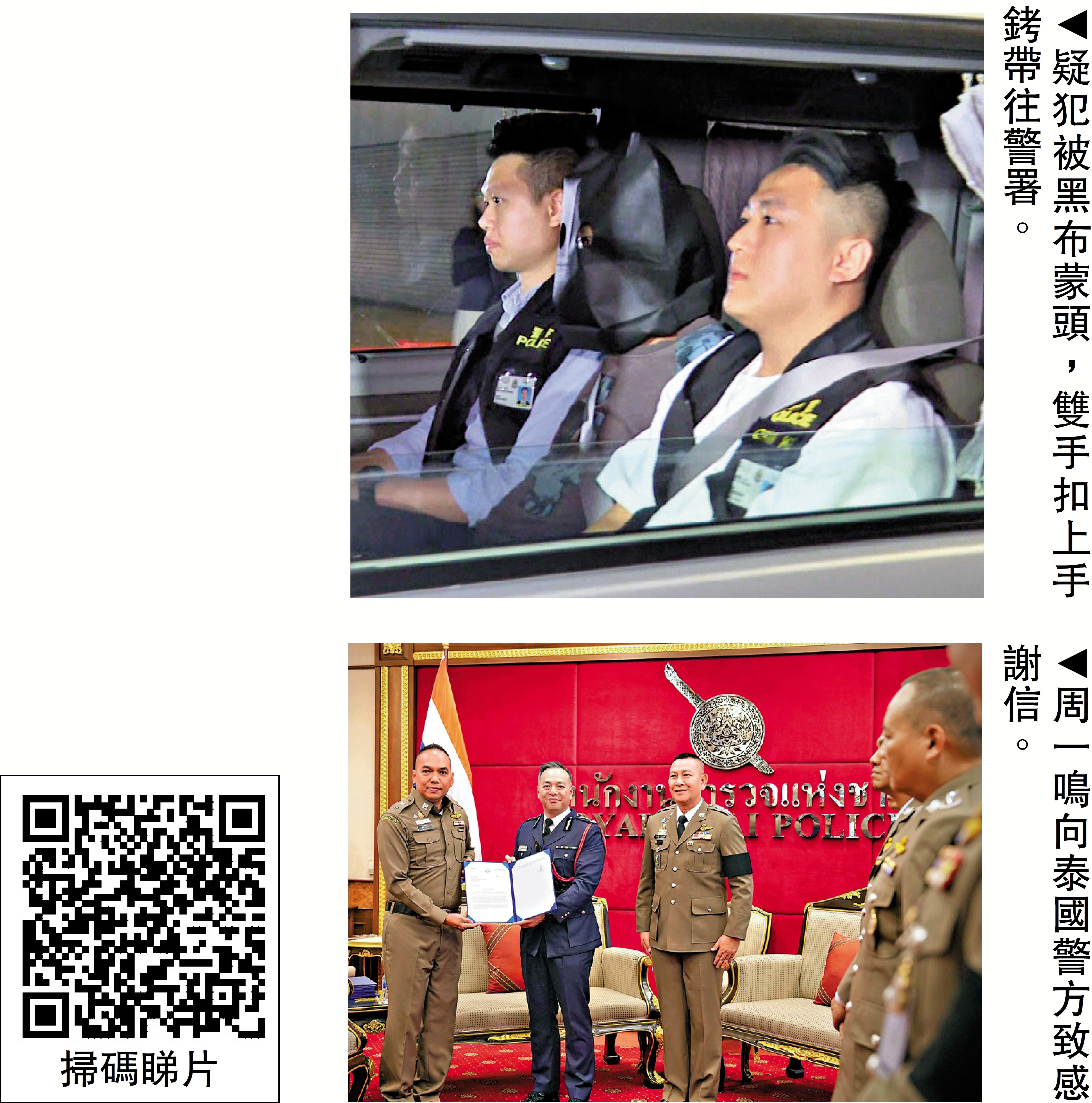 剛從泰國回港的警務處處長周一鳴表示,感謝泰國警方協助拘捕疑犯,令案件得以在此了斷,與律政司審視後,認為有足夠證據提出檢控,稍後在法庭上披露更多資料。