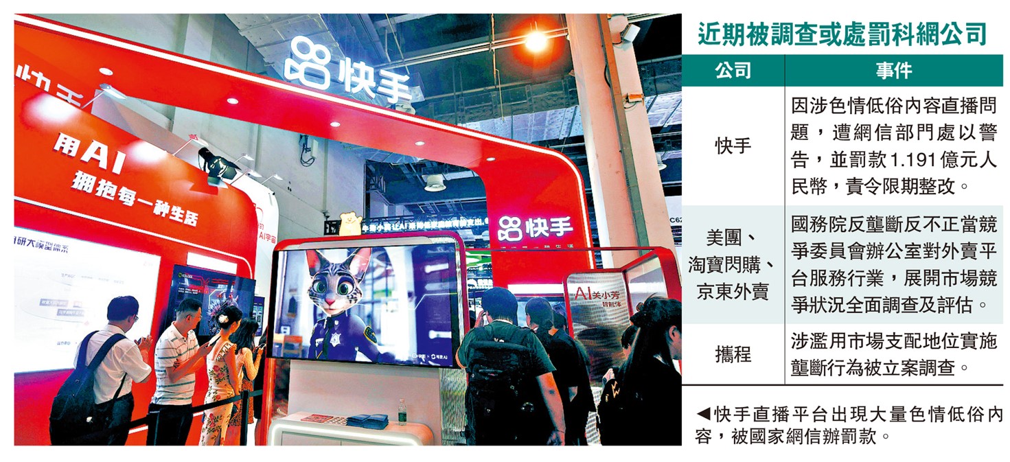 內地科網企業相繼被調查或處罰。國家網信辦公布,對快手(01024)處予罰款1.19億元(人民幣,下同),指其平台早前出現大量色情低俗內容直播問題。快手發布聲明解釋出現色情內容的原因,又形容今次事件教訓極其慘痛,會誠懇接受有關處罰,堅決整改。證券分析師認為,快手早前股價調整或反映負面因素,今次落實罰款帶來的影響有限。\大公報記者 李潔儀