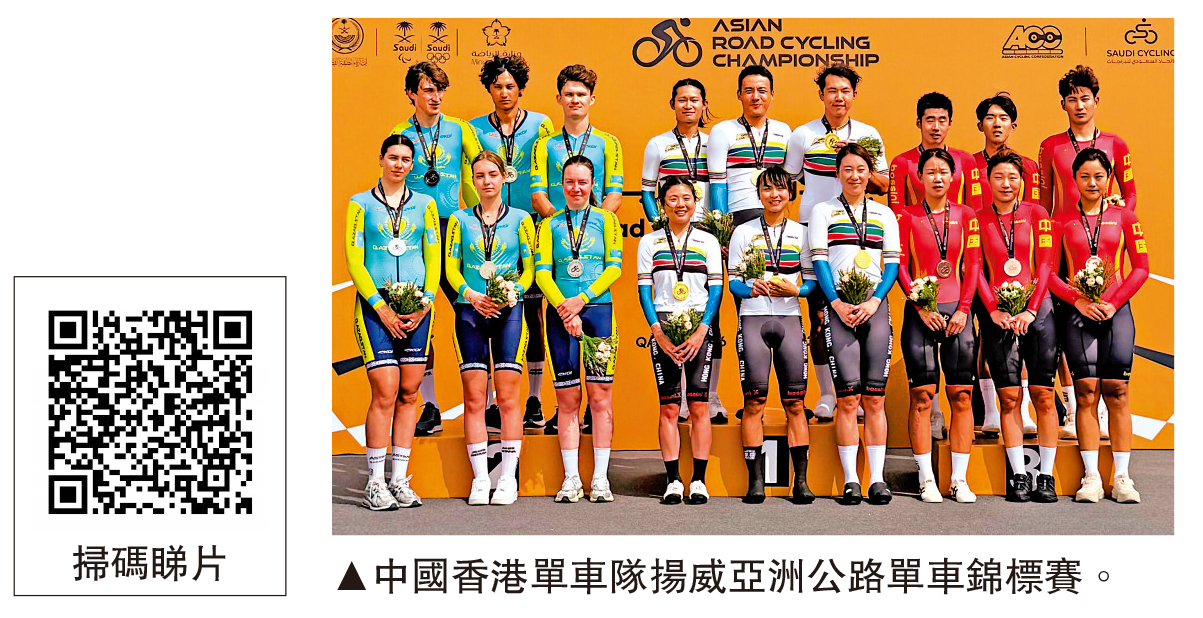 【大公報訊】在沙特阿拉伯舉行的亞洲公路單車錦標賽,中國香港單車隊再傳來喜訊。港隊於混合隊際計時賽勇奪金牌創造歷史。