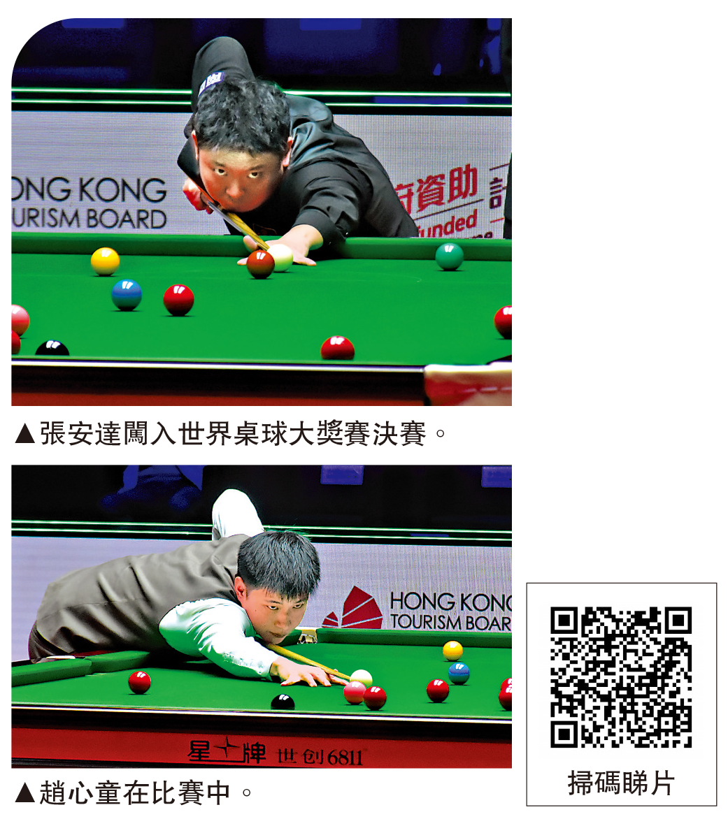 【大公報訊】記者張銳報道:世界桌球大獎賽7日在啟德體育園體藝館上演由4名中國球手展開的4強戰。頭場張安達於決勝局抓住對手周躍龍的關鍵失誤,最終以6:5驚險勝出晉級決賽。他的決賽對手將是趙心童,兩人將於今日(8日)下午1時和晚上7時分兩階段對決。
