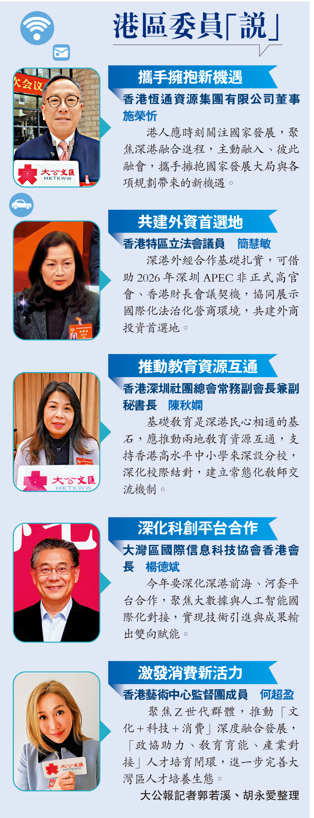港人應時刻關注國家發展,聚焦深港融合進程,主動融入、彼此融會,攜手擁抱國家發展大局與各項規劃帶來的新機遇。