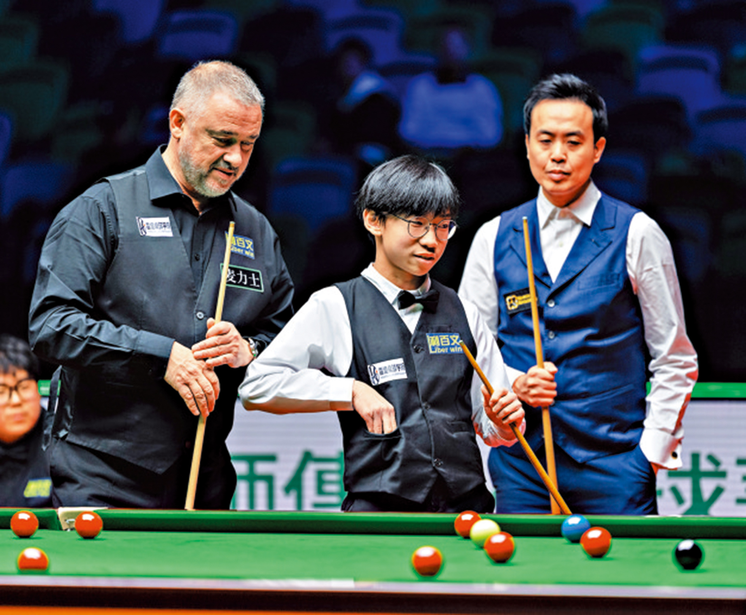 世界桌球大獎賽昨舉行決賽日賽事,上午率先由傅家俊、亨特利與香港桌球學院的學員組隊比賽,劉凱琳、衛栢潼及林展穎與傅家俊一隊,陸建坤、周楊雨澤和胡栩彰則與亨特利同隊。45分鐘的搶分賽中,亨特利隊最終以66:53勝出。