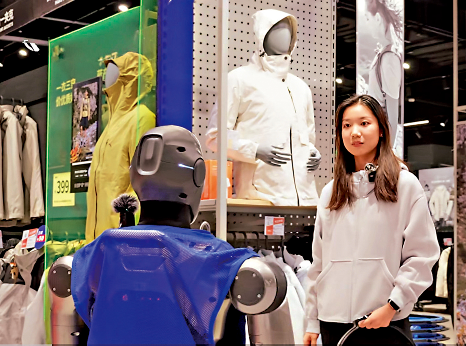 「歡迎光臨迪卡儂,請問有什麼小迪可以幫你的嗎?」「你好,小迪,我下周要去徒步,可以給我推薦一款衝鋒衣嗎?」在深圳迪卡儂沙河店,記者看到,深圳眾擎科技機器人化身導購「小迪」,給顧客「出謀劃策」、帶領他們選購戶外用品。