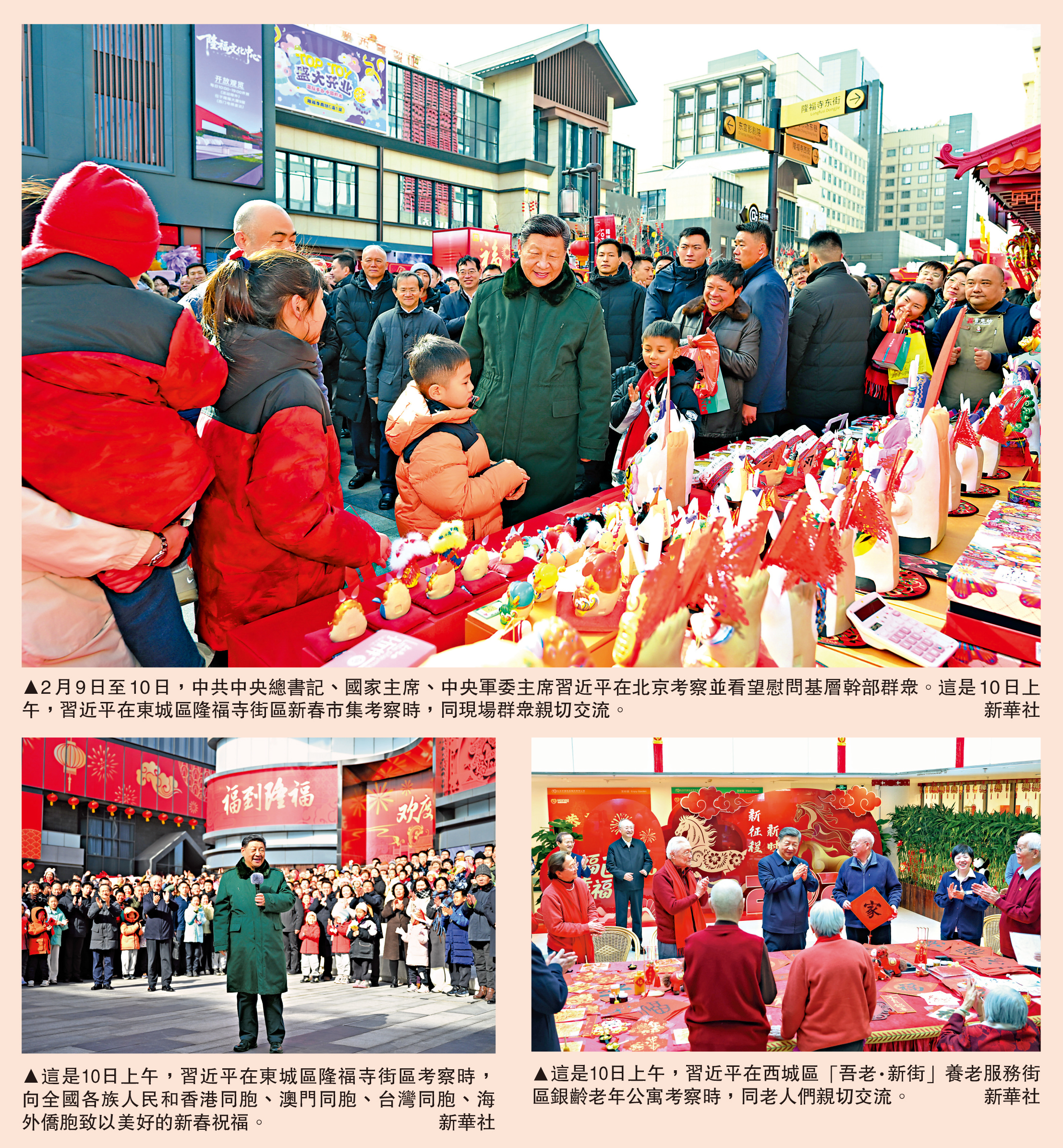 2月9日至10日,習近平在中共中央政治局委員、北京市委書記尹力和市長殷勇陪同下,深入科創園區、養老服務街區、新春市集考察,給基層幹部群眾送上黨中央的關懷和祝福。
