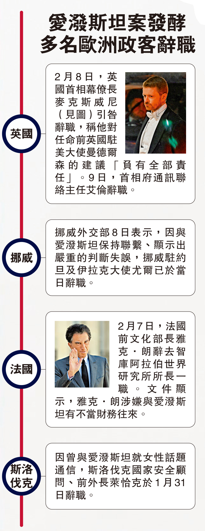 2月7日,法國前文化部長雅克·朗辭去智庫阿拉伯世界研究所所長一職。文件顯示,雅克·朗涉嫌與愛潑斯坦有不當財務往來。