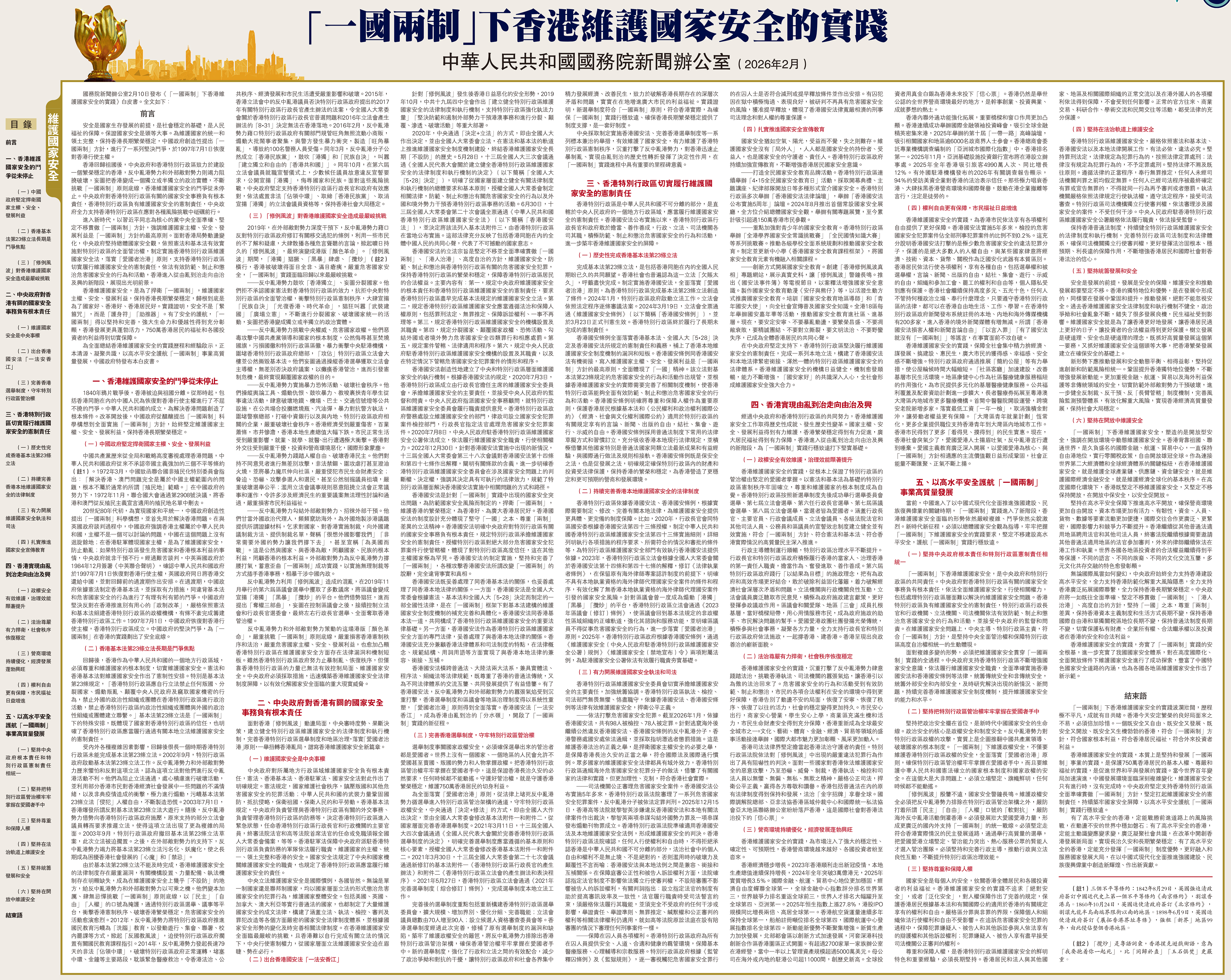 國務院新聞辦公室2月10日發布《「一國兩制」下香港維護國家安全的實踐》白皮書。全文如下: