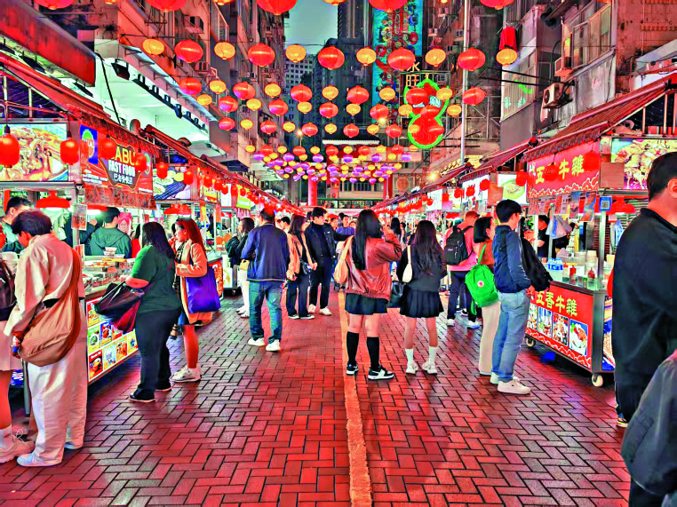 圖﹕有廟街夜市小吃攤檔預計今年春節生意可望再增兩成。\大公報記者肖泓宇攝