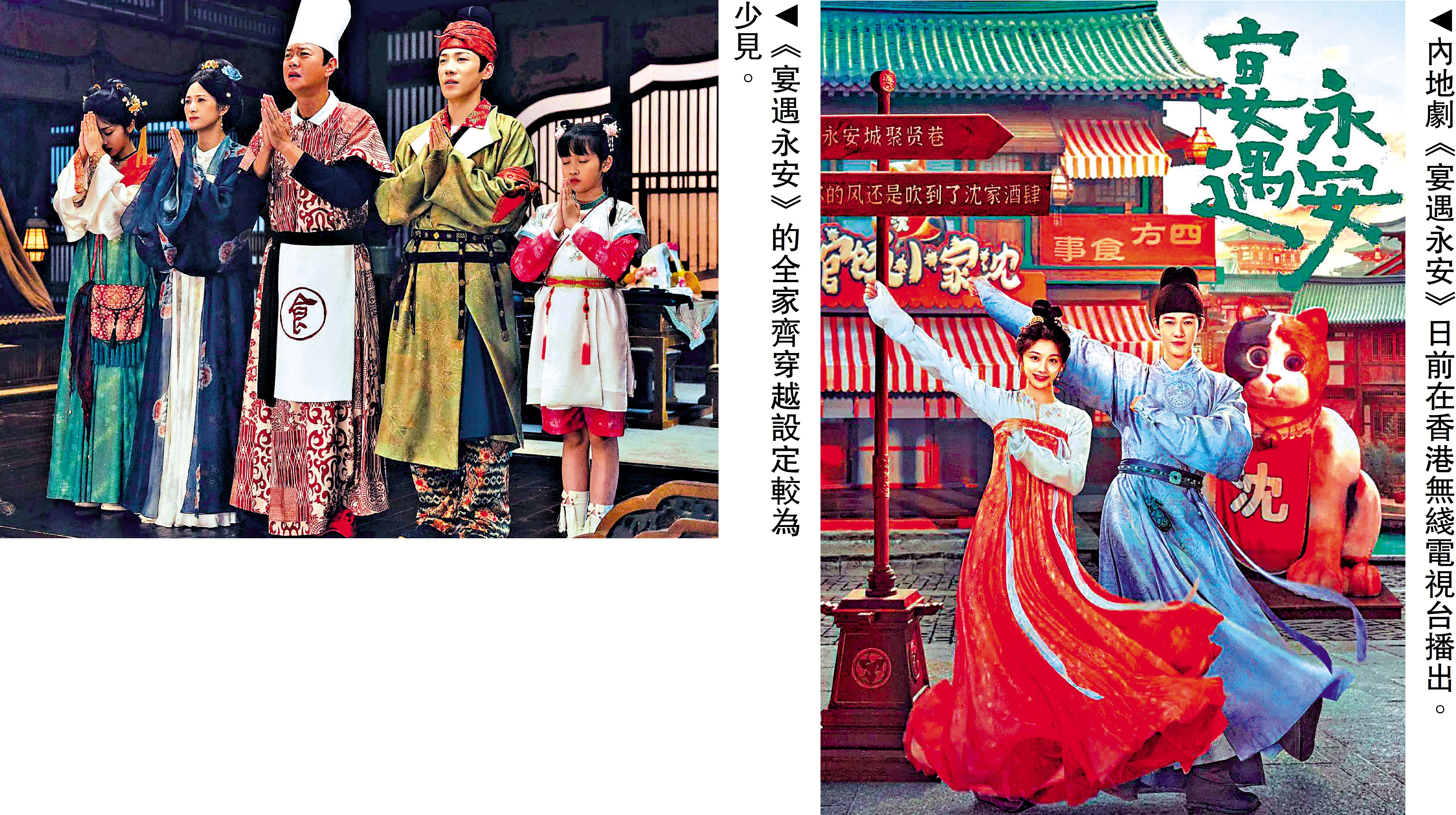早年間網絡小說流行時,網文平台上曾湧現出大批高熱度的小說,隨着影視行業的發展,其中很多作者的熱門小說也被拍攝成影視作品。日前在香港無綫電視台播出的內地劇《宴遇永安》(又名:《歡樂茶飯》),正是改編自網絡熱門小說《長安小飯館》。作為一部古代奇幻美食輕喜劇,《宴遇永安》的設定比較討喜。既有流行的穿越元素,還融合了美食、團購帶貨等當下熱門,無論是從演員的選擇還是劇情的設計都能夠吸引大批年輕觀眾觀看。類比同類古偶劇,《宴遇永安》有不少創新之處,讓整部作品更具看點。/王鶴霖