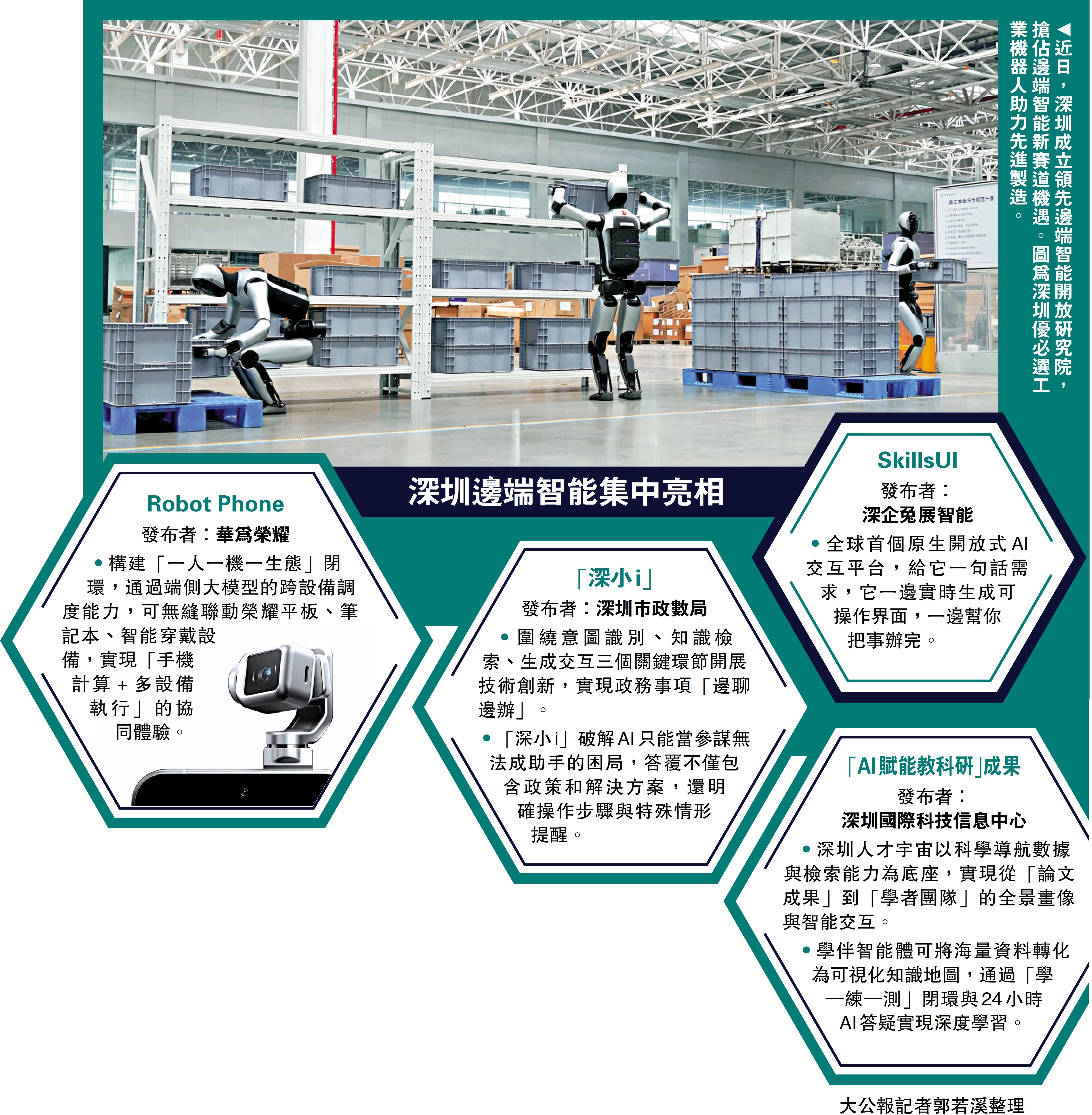 預計到2030年,深圳將在邊端智能體領域形成自主可控的核心技術能力,推動一批標誌性的邊端智能產品、產業項目落地。深圳領先邊端智能開放研究院的設立,是深圳推進邊端智能體建設、邁向「AI智能體之城」的重要舉措。\大公報記者 郭若溪