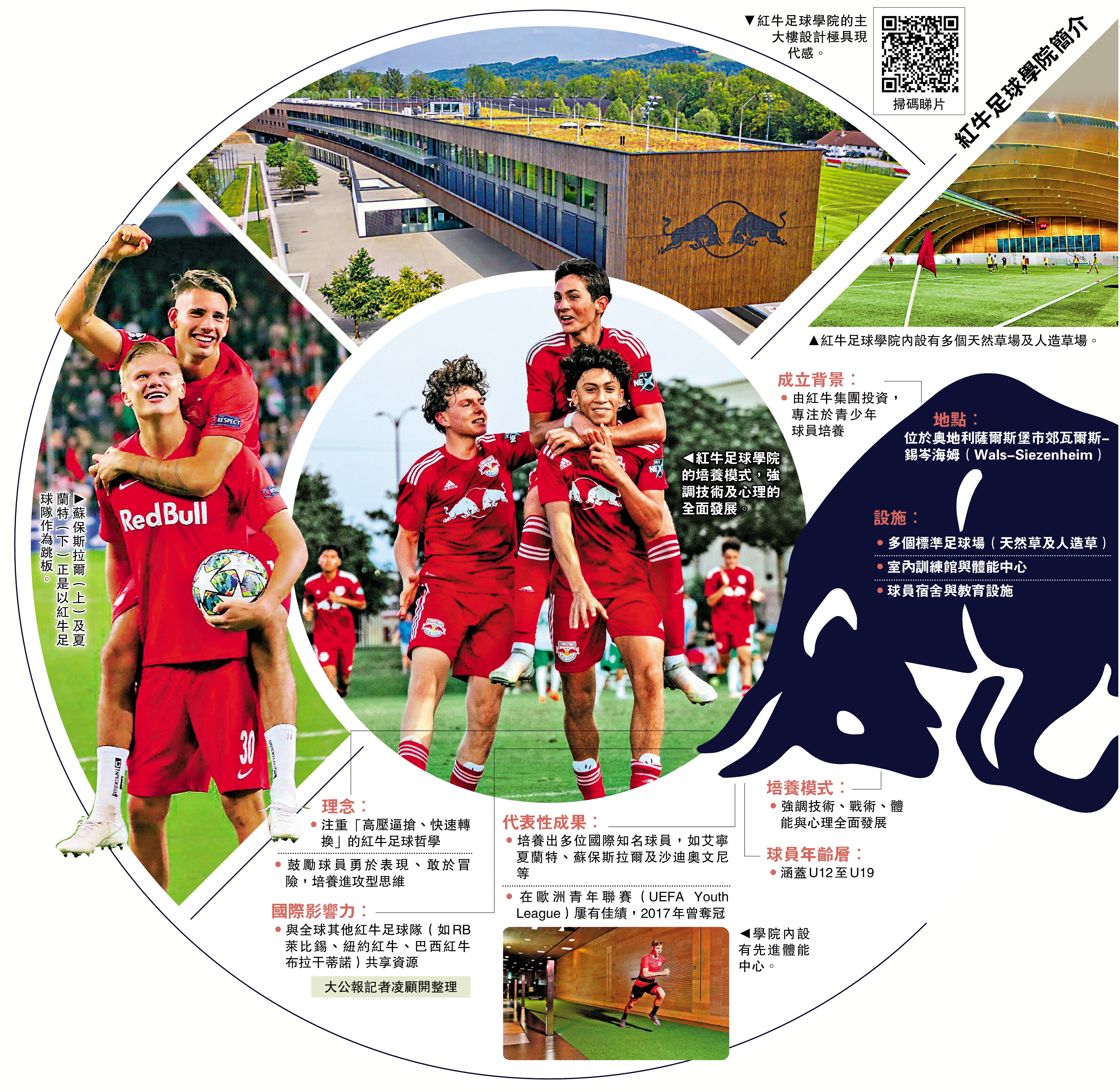 提到奧地利薩爾斯堡紅牛足球隊,大多數球迷想到的是他們擅長低價買入新星再高價賣出,艾寧夏蘭特、蘇保斯拉爾及沙迪奧文尼等知名球星都曾以紅牛為跳板,最終踏入頂級豪門。球隊的足球青訓學院(下稱「紅牛學院」),發掘苗子、培養新星,堅持「今天為了明天」的理念,在通往職業足球的通道之外,還能給學員的未來人生提供更多可能性。