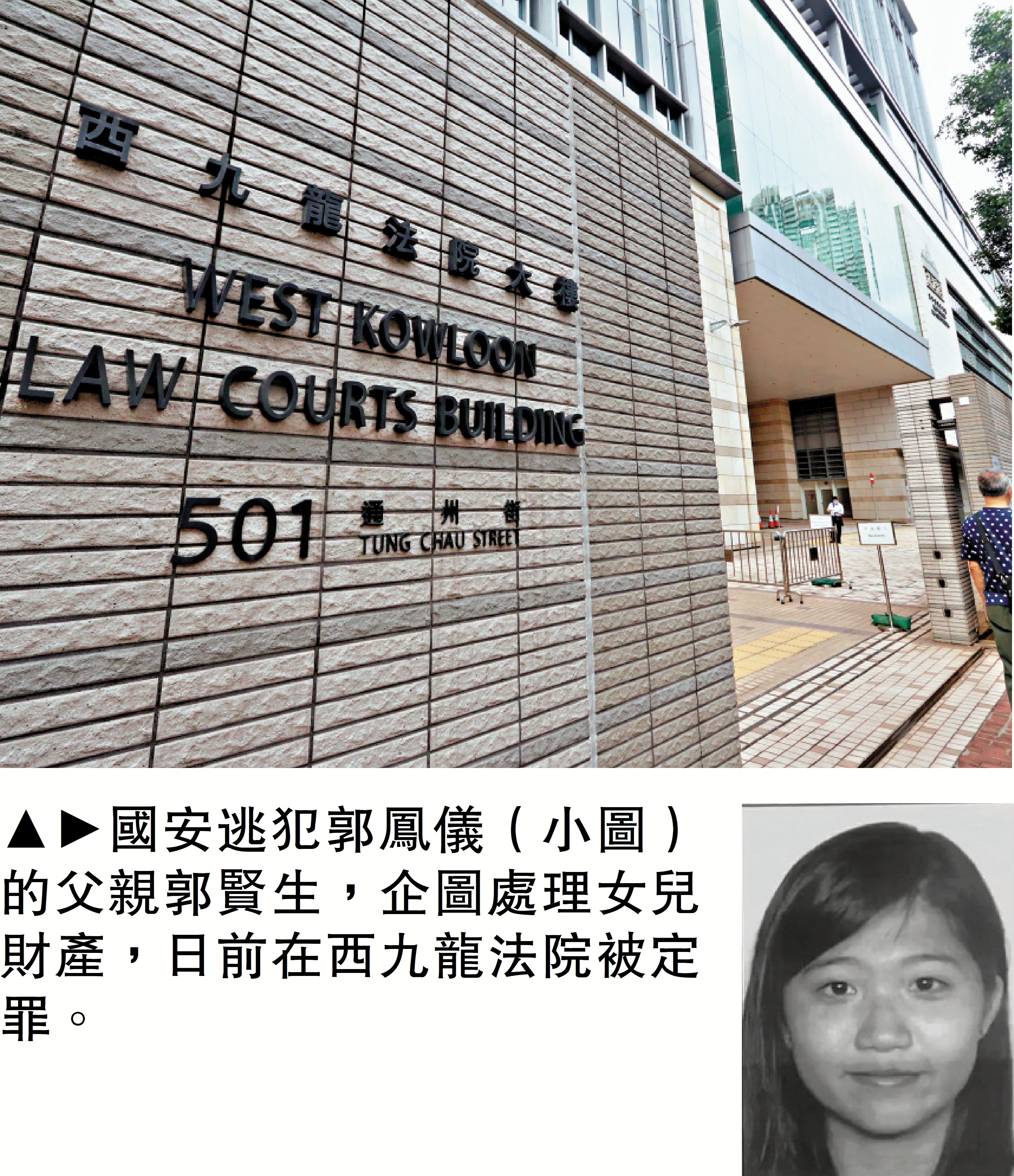 【大公報訊】記者龔學鳴報道:西九龍裁判法院11日裁定,被通緝的國安逃犯郭鳳儀之父郭賢生,一項「企圖直接或間接處理屬於有關潛逃者或由有關潛逃者擁有或控制的資金或其他財務資產或經濟資源」罪成。此為警方首度引用《維護國家安全條例》控告他企圖處理潛逃者財產罪,明確顯示任何人試圖協助「指明潛逃者」處理在港資產,無論意圖為何,均難逃法網。案件押後至2月26日判刑,其間被告須即時還押。