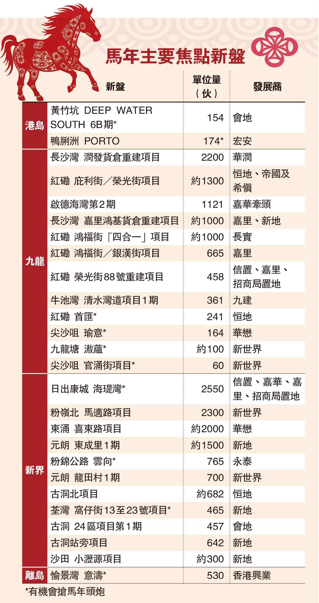 圖:馬年主要焦點新盤