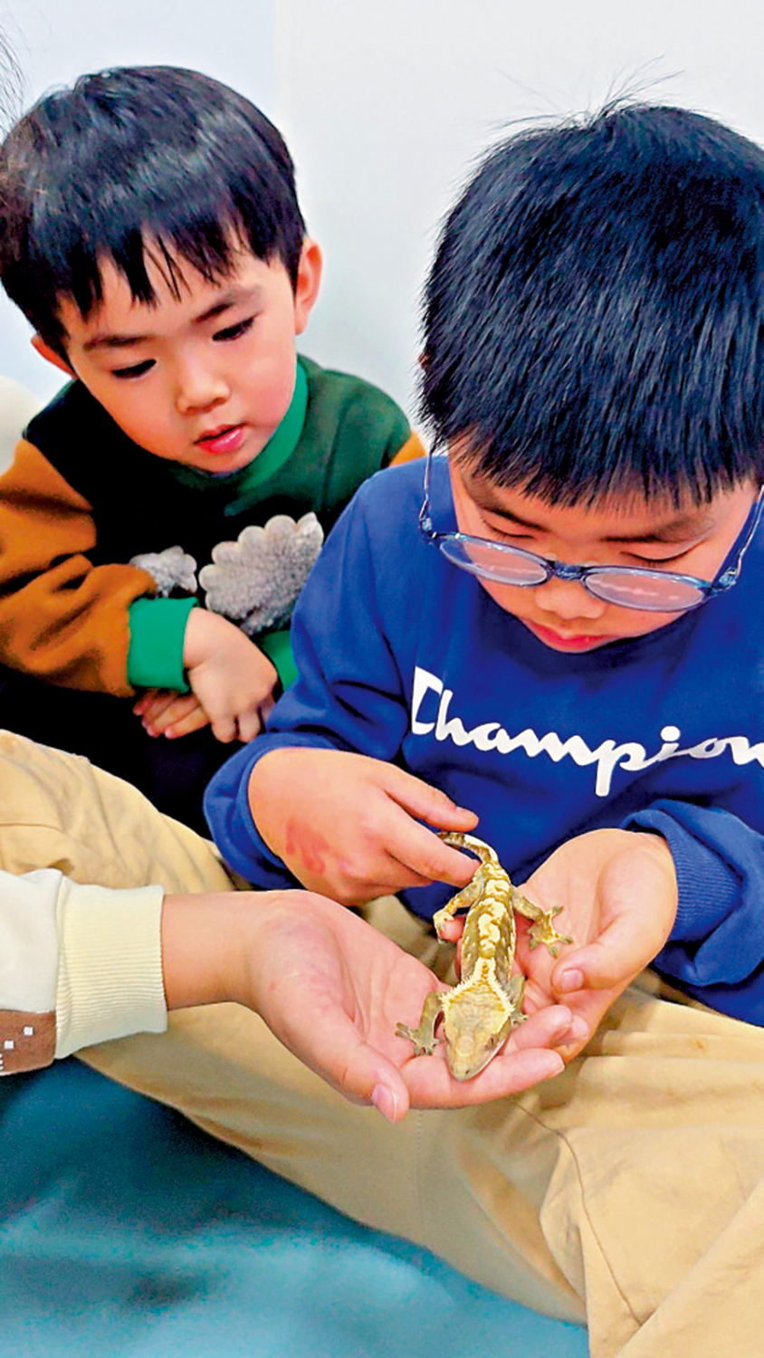 深圳領展中心城的活體昆蟲科普展則聚焦小眾寵物愛好者,展出雨林蠍、玉米蛇、鬃獅蜥、獨角仙、鍬甲等數十種爬行動物和昆蟲。小朋友們可在工作人員指導下近距離觀察、觸摸溫順的爬寵,還能參與「昆蟲手工DIY」「新春萌寵打卡」等互動活動,讓家長和孩子在遊玩中了解小眾寵物知識。\大公報記者李薇