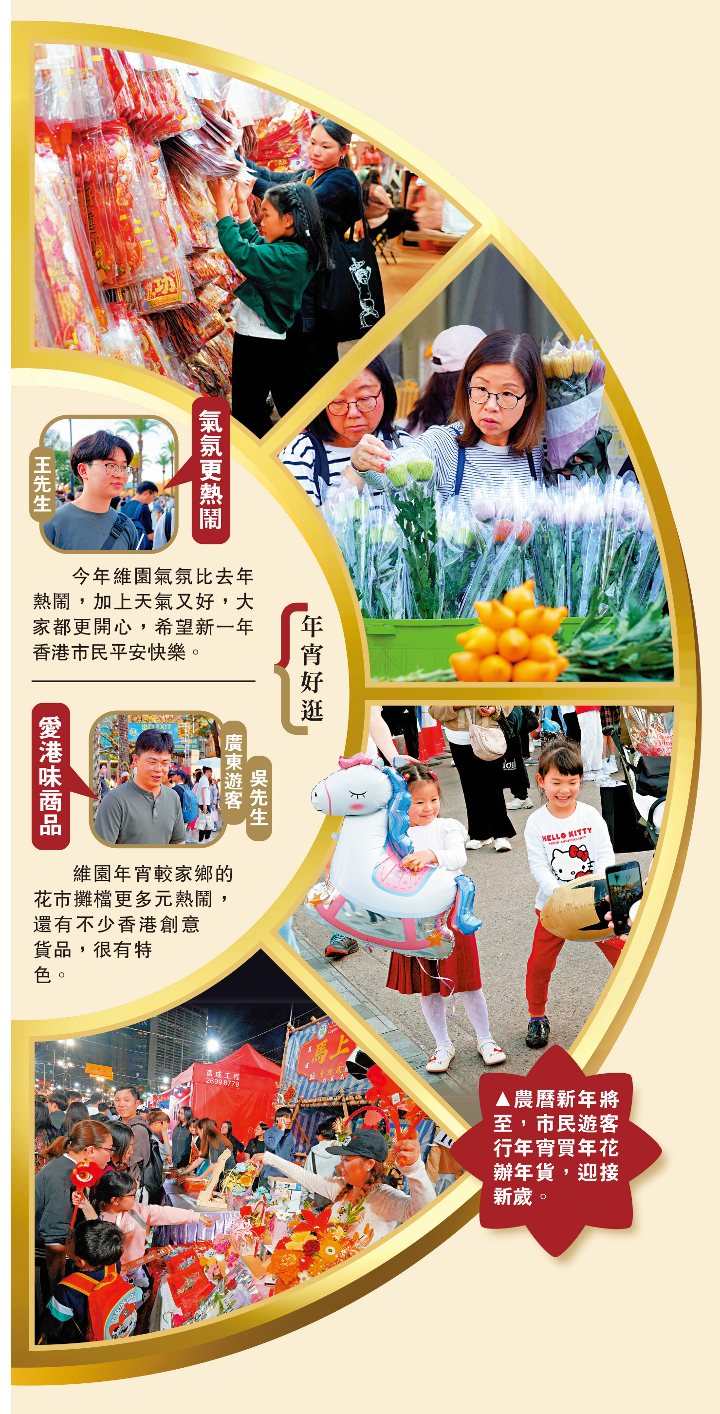 廣東遊客吳先生:維園年宵較家鄉的花市攤檔更多元熱鬧,還有不少香港創意貨品,很有特色。