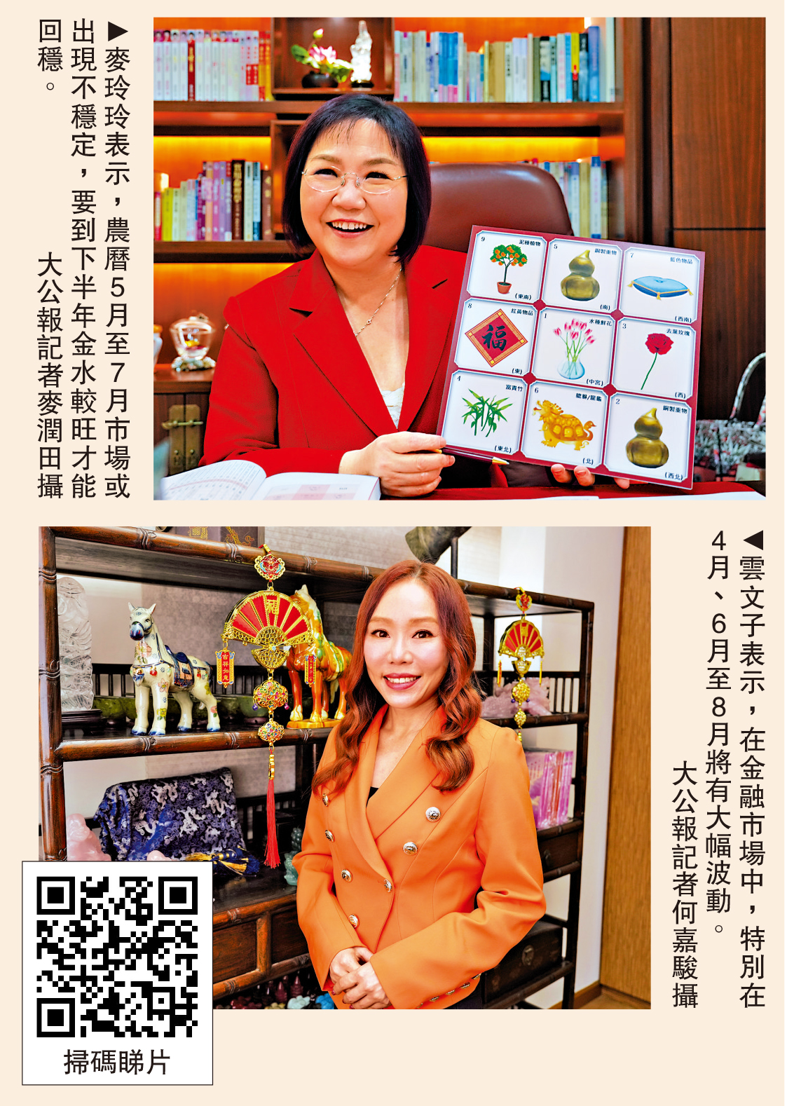 至於香港樓市方面,雲文子指出,奇門卦象有「天沖星」逢「天空」,馬年樓市形勢未宜樂觀,即使一手樓或有少許升幅,但面對短暫的平台期,難以重回疫情前水平,商用市場亦見萎縮。她提到,樓市下半年或見好轉,惟要視乎自身經濟能力再作決定。