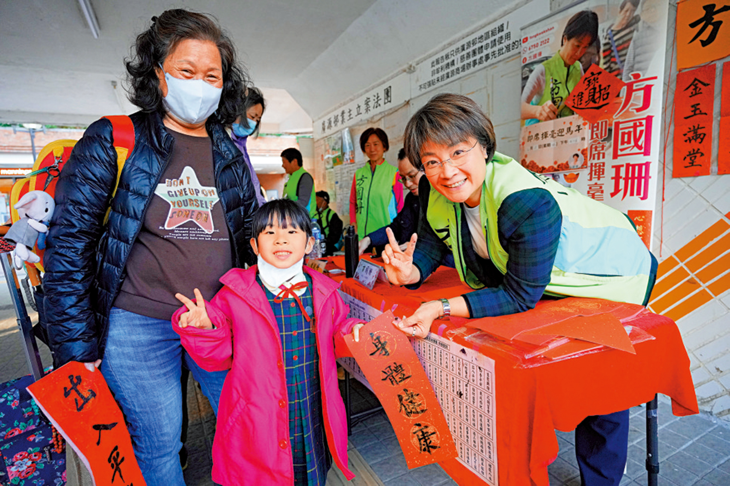 在年味漸濃的街站旁,方國珊架起紙案,鋪上朱紅春聯紙,一手穩執毛筆,一手與街坊寒暄問好,筆鋒轉折間寫下「心想事成」「龍馬精神」「四季平安」等祝福語,一旁義工協助遞墨、扶紙,孩童圍在一側看得入神。歲晚新春期間,方國珊將舉辦寫揮春、迎財神、年貨市集等多場社區活動。貼地活動貼近街訪,同時傾聽街坊訴求。她告訴大公報記者,拜年不止是禮節,更是傾聽與回應的起點,務求把節日問候化作具體回應。