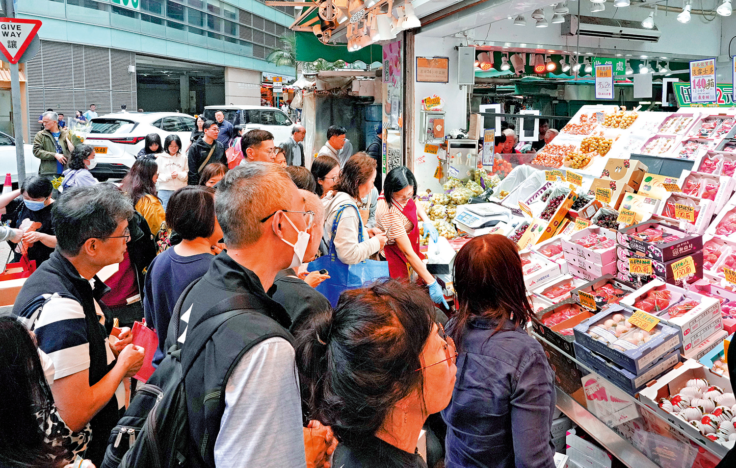 年廿八的灣仔及鵝頸街市,不少市民開始備貨做節,購買鮮肉、燒臘、蔬果等預備團年飯。港人「做節」食飯必不可少的雞,售價為120至140元一斤,腩肉58元一斤、排骨68元一斤,生菜等時蔬為10至16元一斤。多位檔主均表示,今年除夕沒有加價。有菜檔檔主笑言「不加價啦,讓大家買得順心,開心過大年」。有燒臘檔則預計除夕油雞、切雞每隻漲價10元至130元。