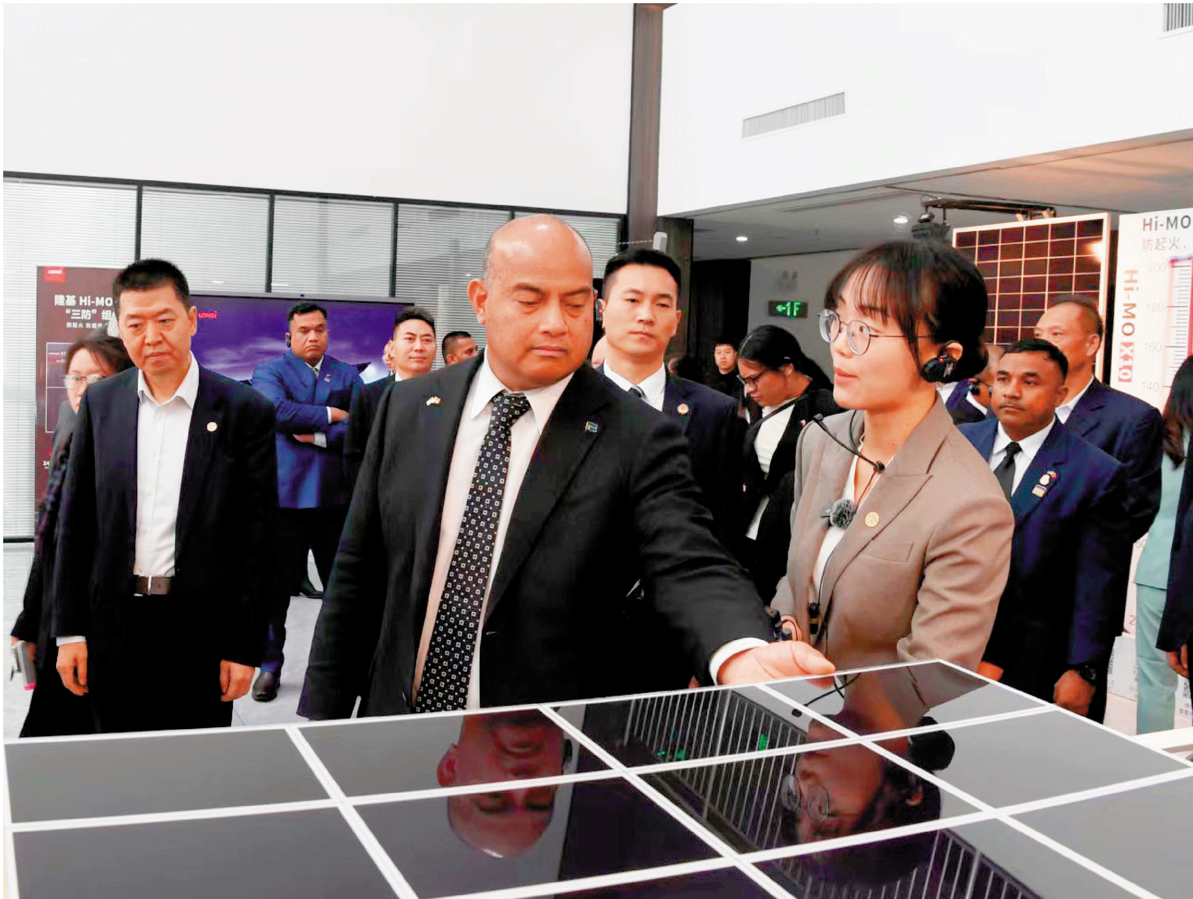 阿迪昂總統在訪問江門時特別參觀了光伏建築一體化展示區、光伏小屋體驗館、屋頂電站等地,詳細了解光伏建材產品應用推廣情況。他充分肯定了項目的創新性,認為對太陽能的利用使能源實現可再生化,並相信類似項目或技術能夠幫到其他國家。「目前瑙魯的可再生能源佔比達50%,相信通過兩國之間的合作,可以在很短的時間內將這一比例提升至100%,並成為其他國家在中方支持下取得成果的榜樣。」