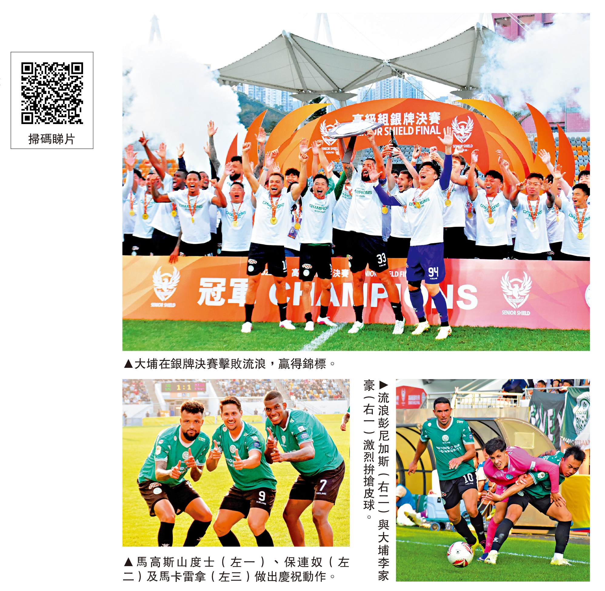 高級組銀牌決賽18日大年初二在旺角大球場舉行,大埔與流浪激戰120分鐘,最終大埔憑藉後備上陣的保連奴在加時階段頂入關鍵頭球,加上馬卡雷拿連下兩城,最終以4:1勝出,成功繼2012至2013賽季後,再度捧走這項錦標。昨天賽事吸引4738名球迷入場,創下今季本地球賽入座人數新高,氣氛熱烈。\大公報記者 張銳(文、圖)