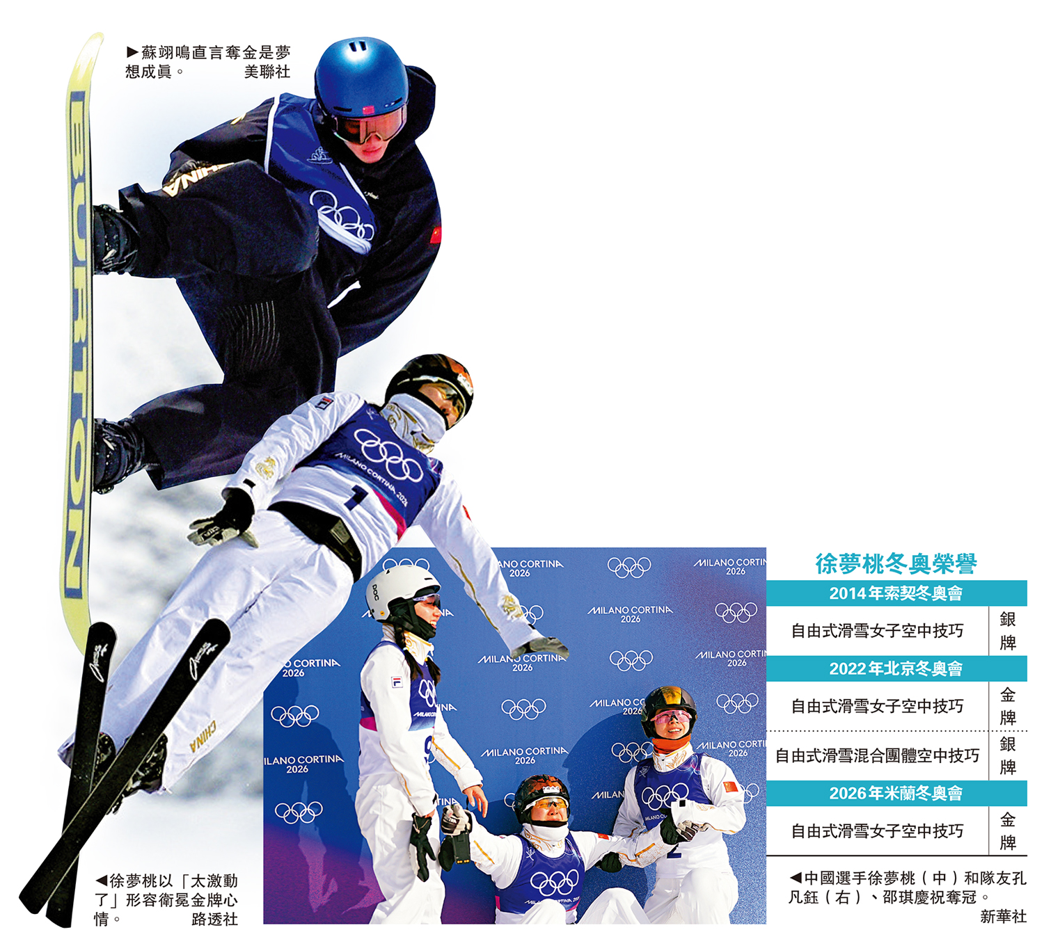 【大公報訊】據米蘭冬奧官網報道:18日,2026年米蘭科爾蒂納冬奧會自由式滑雪女子空中技巧決賽在托法納高山滑雪中心結束,國家隊選手徐夢桃成功衛冕,成為該項目歷史上首位實現冬奧連冠的運動員。