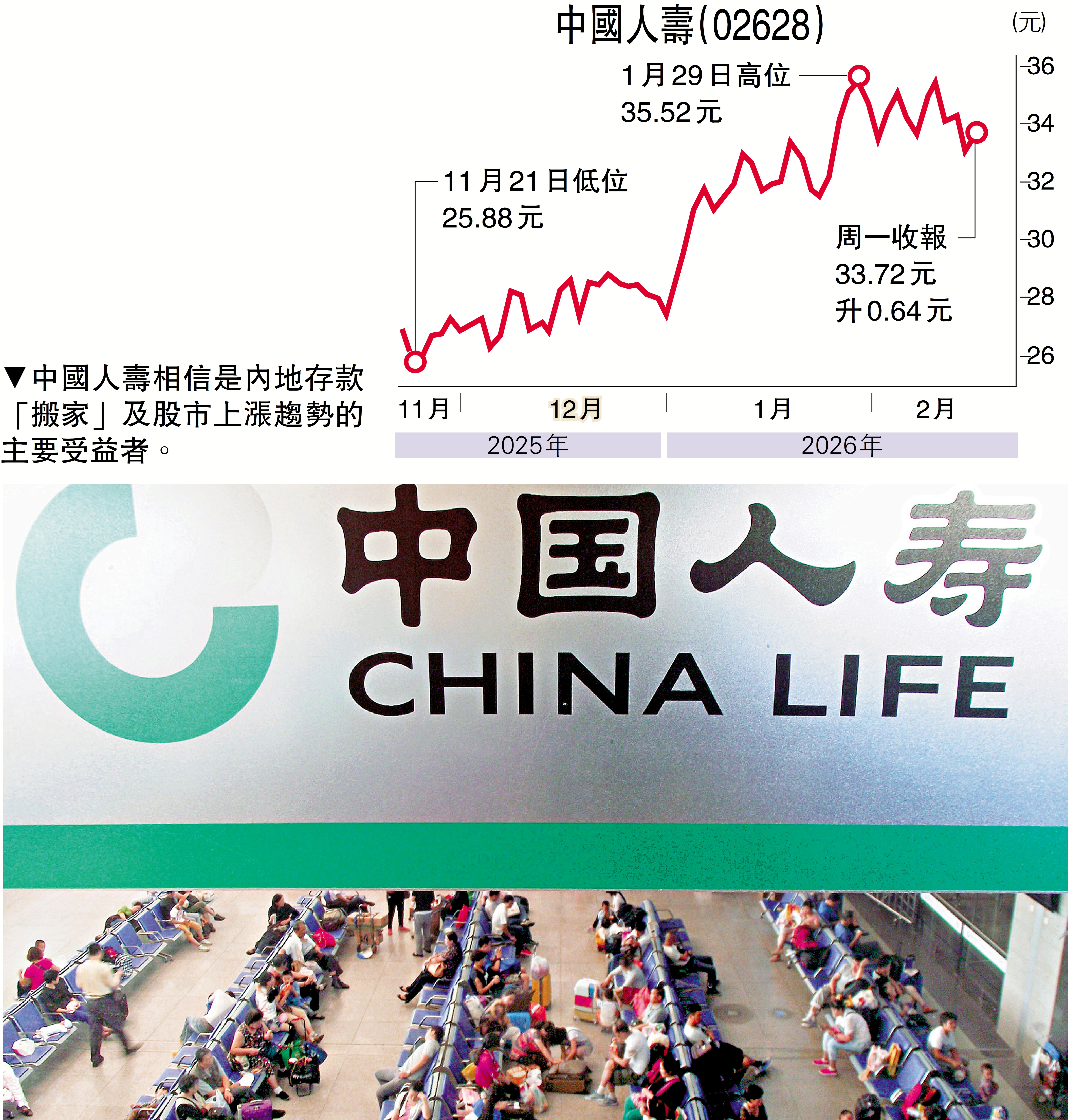 另瑞銀新近的研究報告也表示,中國人壽是內地存款「搬家」及股市上漲趨勢的主要受益者,而且其新業務價值增長前景改善,加上宏觀條件有利帶動內含價值預測上調,故維持其「買入」評級。
