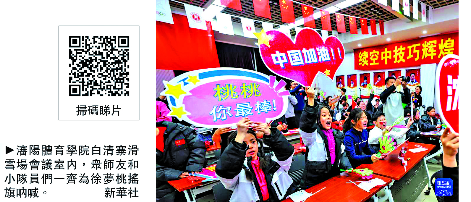 【大公報訊】據中新網報道:18日,米蘭冬奧會自由式滑雪女子空中技巧決賽賽場,當徐夢桃鎖定金牌的那一刻,萬里之外的徐夢桃母校─瀋陽體育學院白清寨校區會議室內瞬間沸騰,眾師友和小隊員們歡呼雀躍。