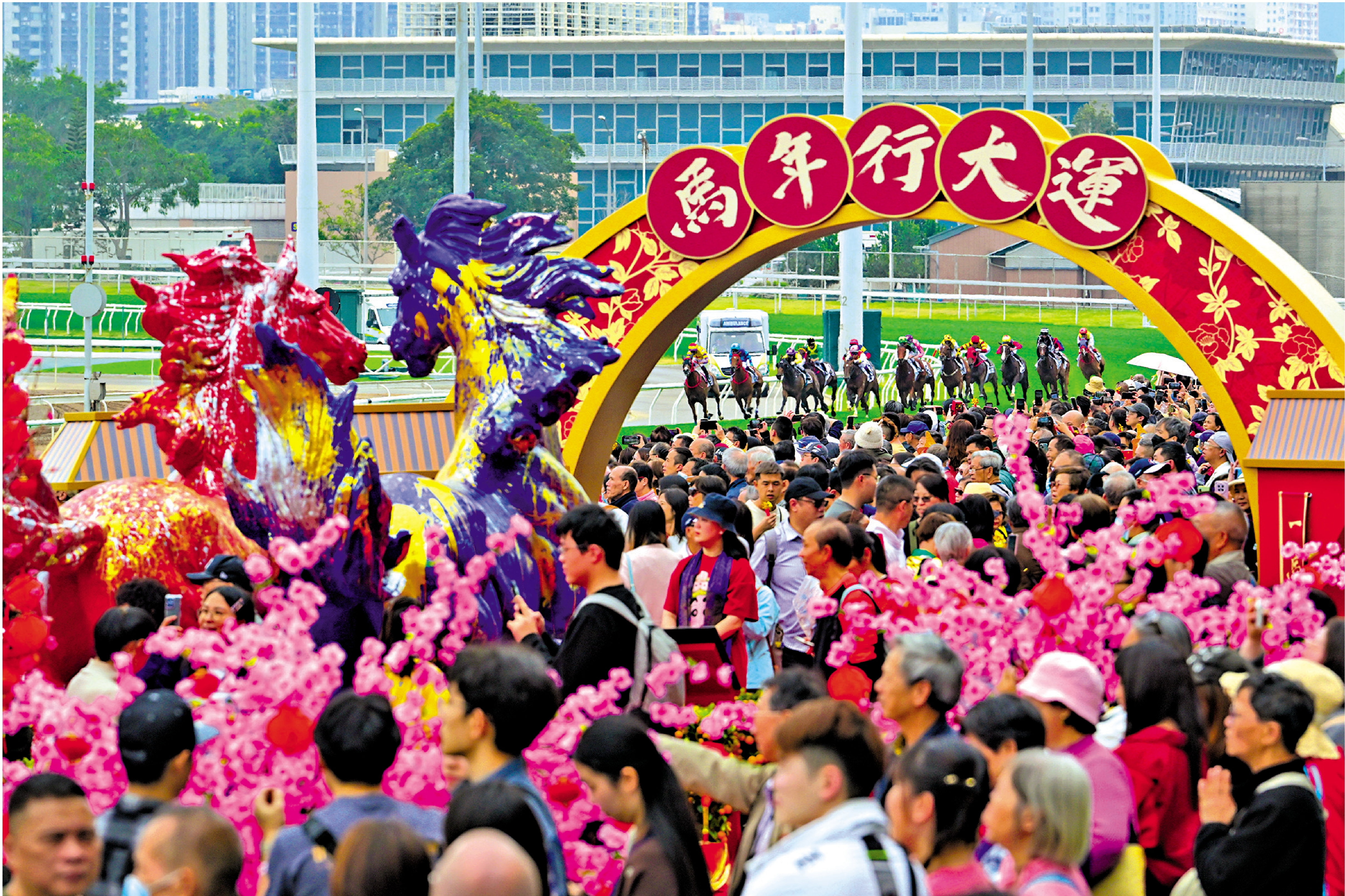 香港人與馬也密不可分。每年正月初三,香港在沙田馬場舉辦農曆新年首場賽馬迎春,去年共吸引八萬多人入場觀賽。今年「馬年賽馬日」更為民眾遊客帶來別樣的新春體驗,近10萬人入場迎來開門紅。香港賽馬歷史悠久,由英國人傳入,逐漸成為本地文化及世界級娛樂。前台是競技,後台是博彩,看賽馬、買馬彩深受民眾喜愛。馬背上不僅有香港精神,更有源源不斷的財富。既是一種文化現象,也是生活一部分,更是一張港式特色名片與一場永不落幕的饕餮盛宴。