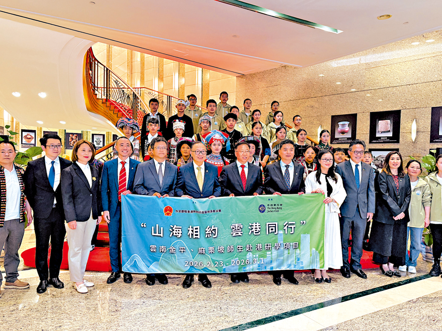 【大公報訊】大公文匯全媒體記者史柳藝報道:為深化內地師生對「一國兩制」在香港成功實踐的認識,外交部駐港特派員公署於本月23日至下月1日舉辦「山海相約 雲港同行」雲南金平、麻栗坡師生赴港研學項目,邀請外交部定點幫扶的雲南金平、麻栗坡兩縣共34名優秀師生代表來港研學,助力學生拓闊視野、樹立遠大理想。研學項目啟動禮於昨日順利舉行,未來幾天,雲南師生們將走進香港高校及多個地標,與本港師生交流及細聽有關「一國兩制」與香港發展專題講座,近距離感受香港的發展活力與文化魅力。