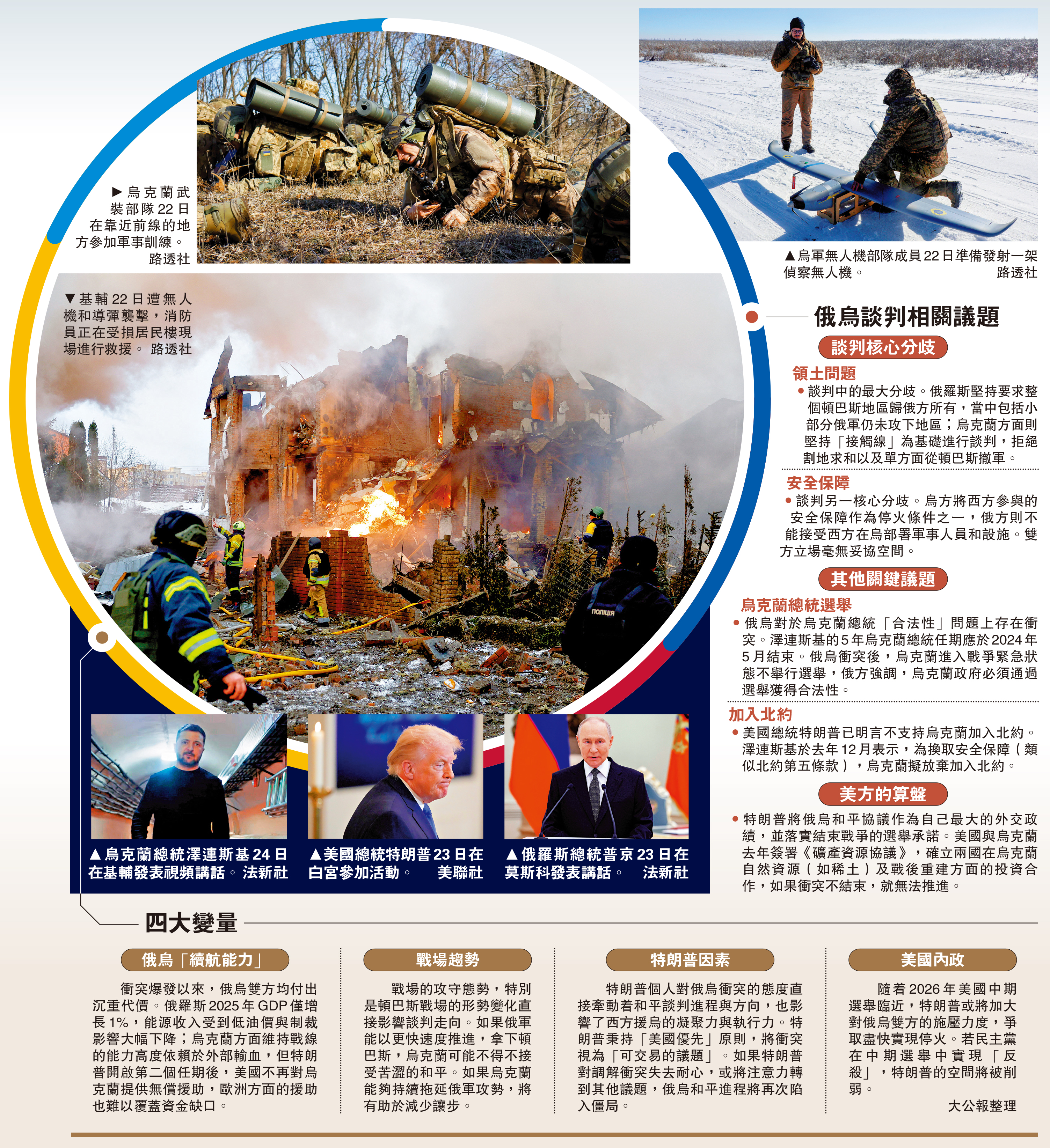 •美國總統特朗普已明言不支持烏克蘭加入北約。澤連斯基於去年12月表示,為換取安全保障(類似北約第五條款),烏克蘭擬放棄加入北約。