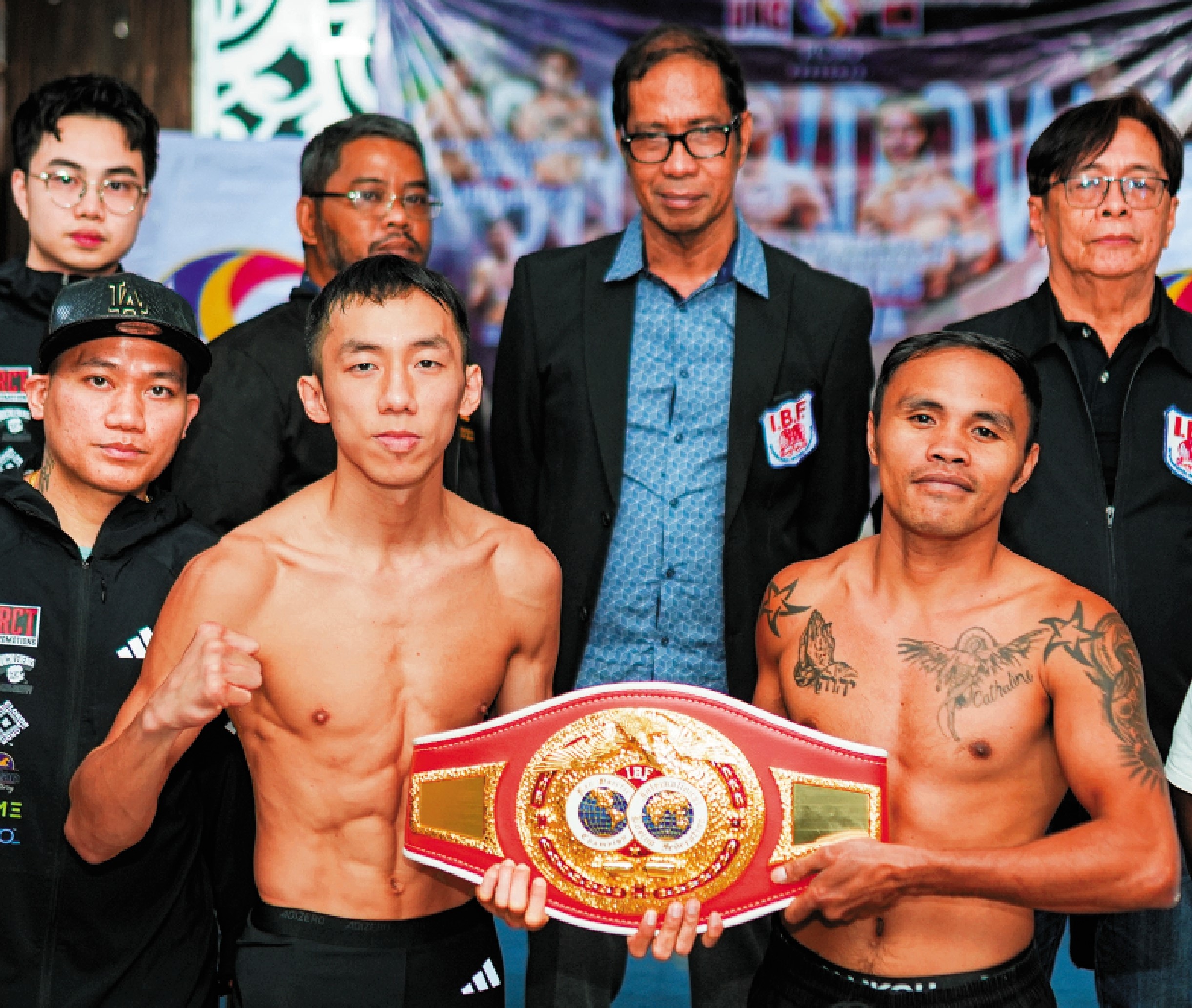 香港拳壇「神奇小子」曹星如(前排左二)(23勝0負1和,14次KO),今日將於馬尼拉迎來關鍵一戰,於主賽事硬撼菲律賓拳手、外號「眼鏡蛇」的利賓沙(前排右)(22勝5負,14次KO),力爭IBF泛太平洋雛量級冠軍金腰帶,以集齊「四大組織」區域冠軍!
