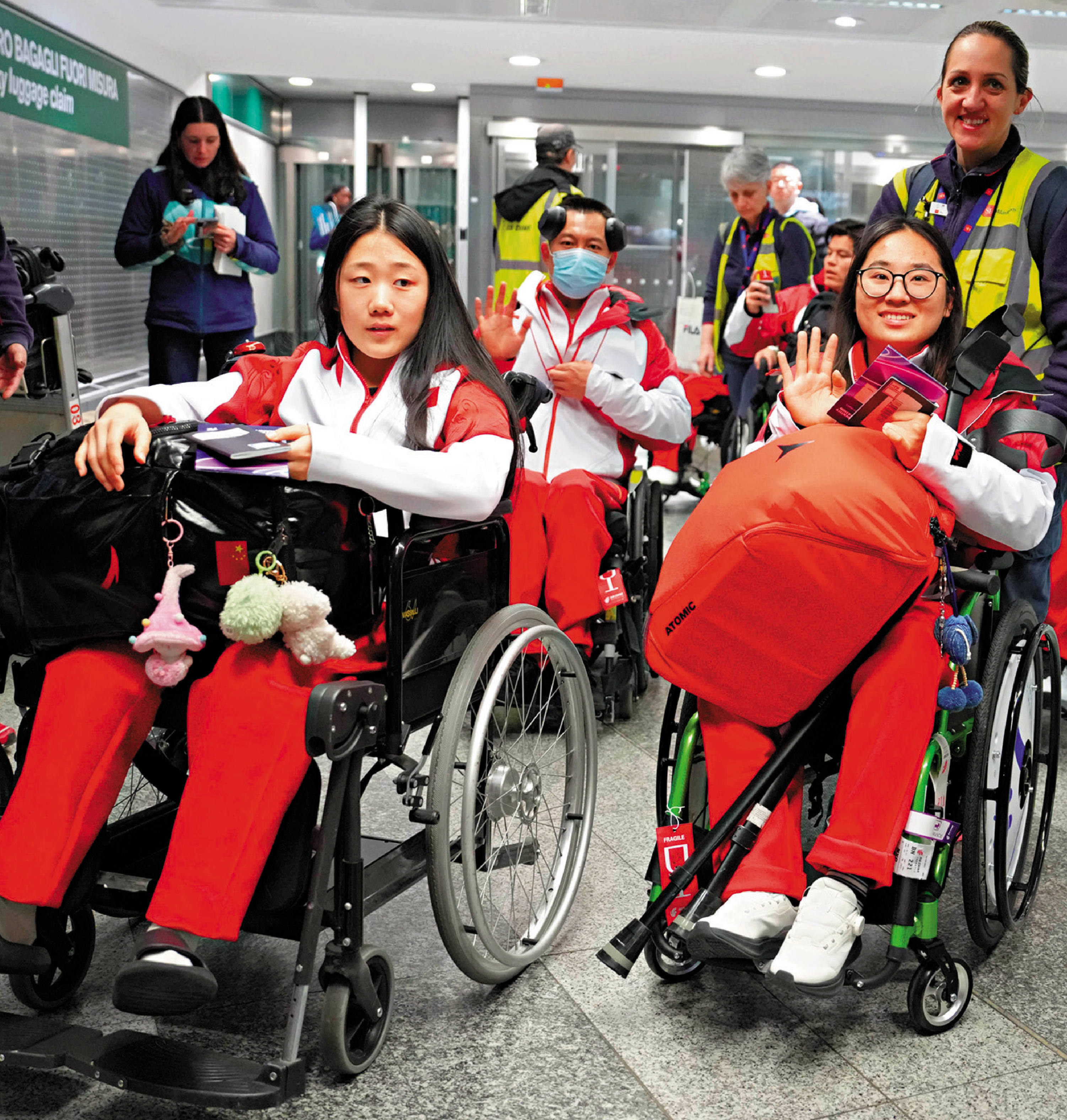 【大公報訊】米蘭冬殘奧會將於3月6日至15日在意大利舉行,中國體育代表團(下圖)在當地時間2月28日抵達意大利米蘭馬爾彭薩機場。本屆冬殘奧會共設殘奧冰球、輪椅冰壺、高山滑雪、單板滑雪、越野滑雪、冬季兩項6個大項、79個小項。屆時將有來自52個國家和地區的600多名運動員參賽。這是中國代表團第七次參加冬季殘奧會,將參加全部6個大項中的71個小項比賽。