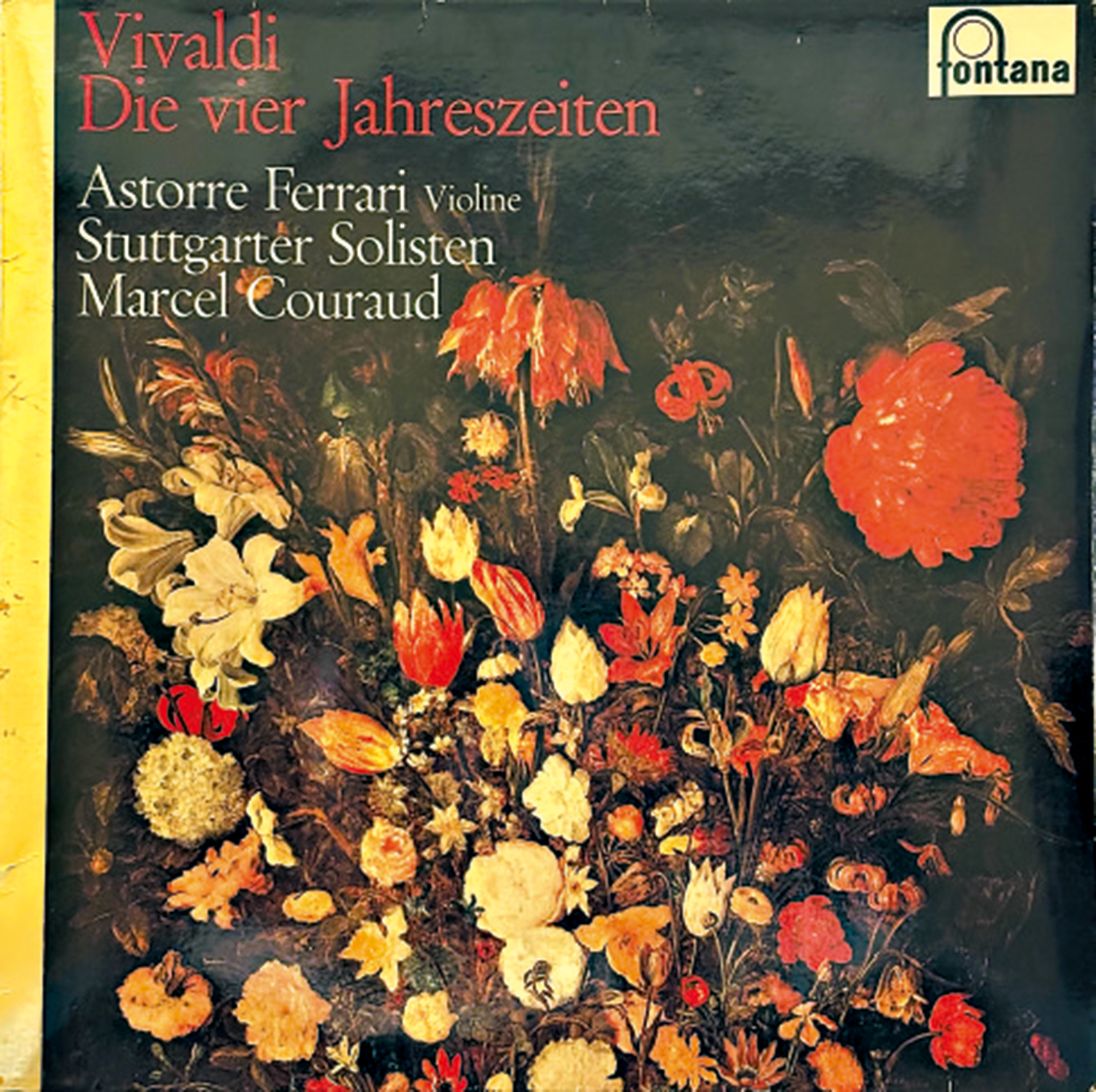 明天是傳統驚蟄節氣,往往從這一天開始,我們才會見證真正的春意盎然和萬物復甦。今日恰逢備受古典樂迷喜愛的巴洛克作曲家安東尼奧·維瓦爾第誕辰三百四十八周年。因此,本周應景地推薦一張FONTANA廠牌在荷蘭灌錄並發行,由二十世紀法國指揮家馬塞爾·克勞德執棒斯圖加特室內樂團,攜手意大利小提琴家阿斯托雷·法拉利聯袂演繹的一張收錄維瓦爾第《四季》協奏曲的黑膠唱片。唱片封套選擇的是十六世紀尼德蘭繪畫大師老揚·勃魯蓋爾名作《木質容器中的花卉》局部。