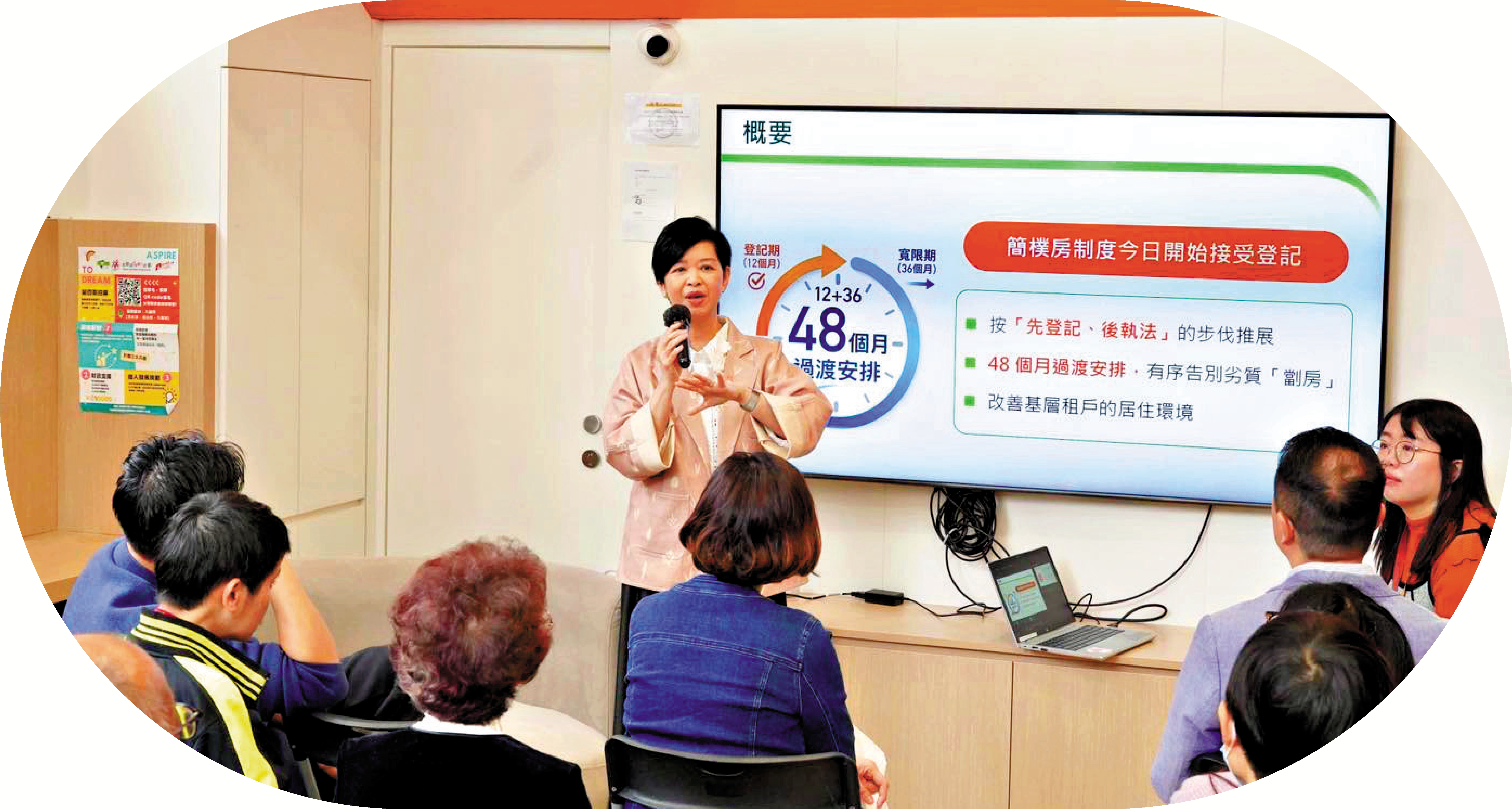 她表示,房屋局轄下6隊區域服務隊會透過街站、家訪、講座、簡介會等宣傳有關資訊,市民亦可到分間單位區域服務隊資訊平台了解區域服務隊資訊。