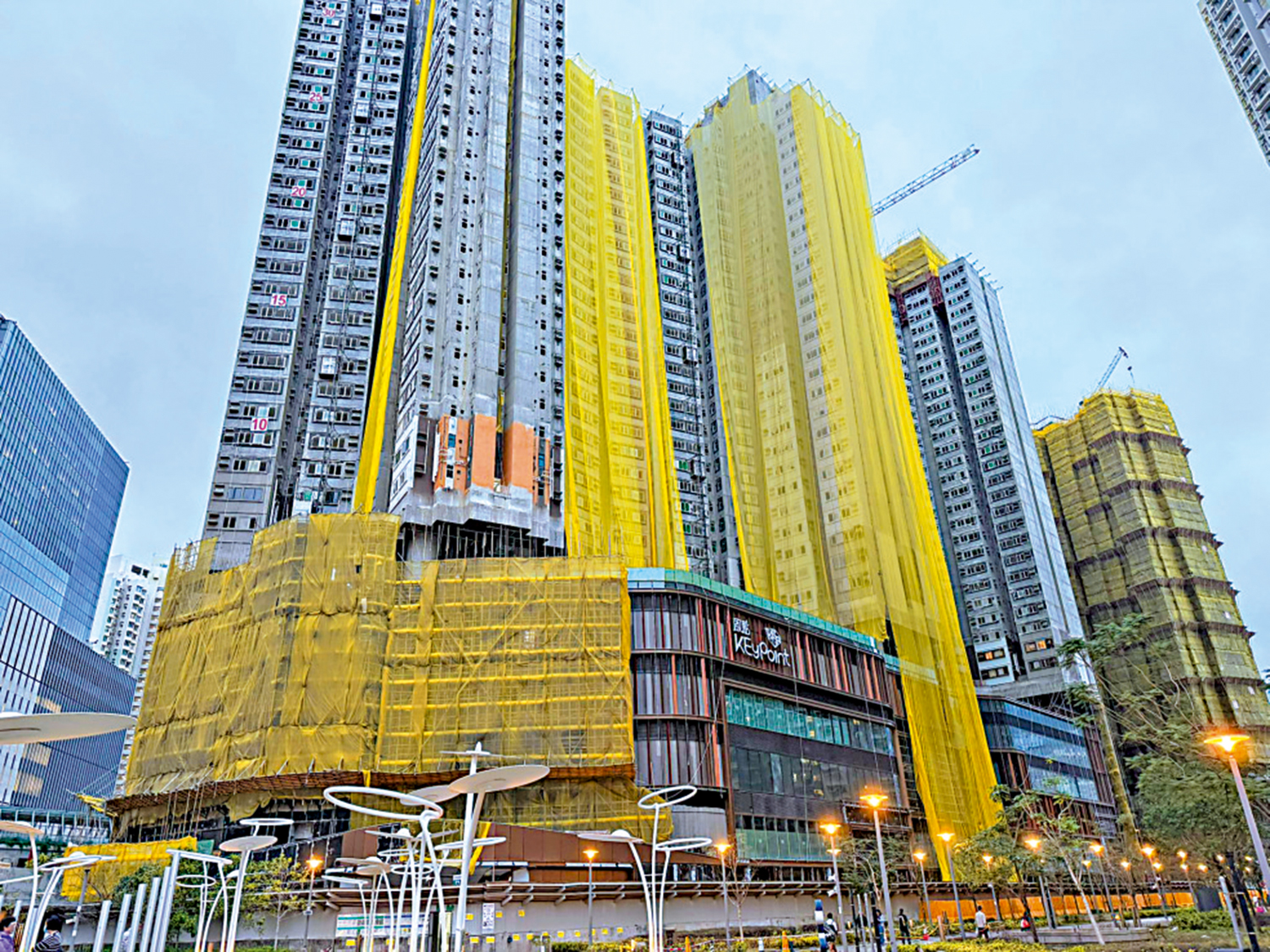大公報記者昨日在「啟點」實地觀察,由啟德港鐵站步行5分鐘,可直達「啟點」,對面是公屋啟晴邨及晴朗商場,附近有私人屋苑,鄰近的商場有雙子匯(The Twins)、AIRSIDE。現場所見,「樂啟都匯」上蓋建築工程已大致完成,開始拆卸棚網。商場外牆裝修完成近半,部分棚網已拆卸,露出商場標誌。商場內有工人進行機電工程。