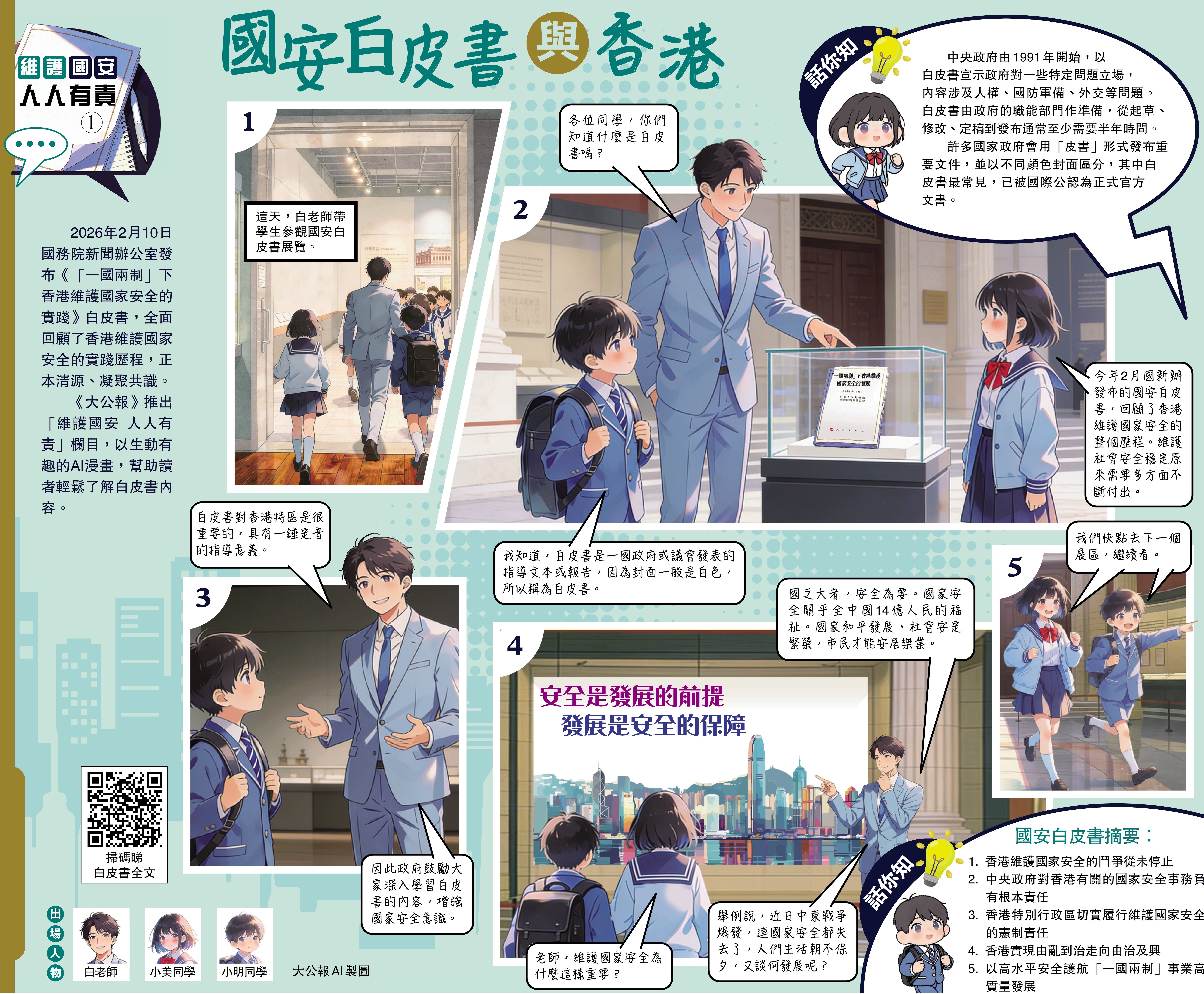 《大公報》推出「維護國安 人人有責」欄目,以生動有趣的AI漫畫,幫助讀者輕鬆了解白皮書內容。
