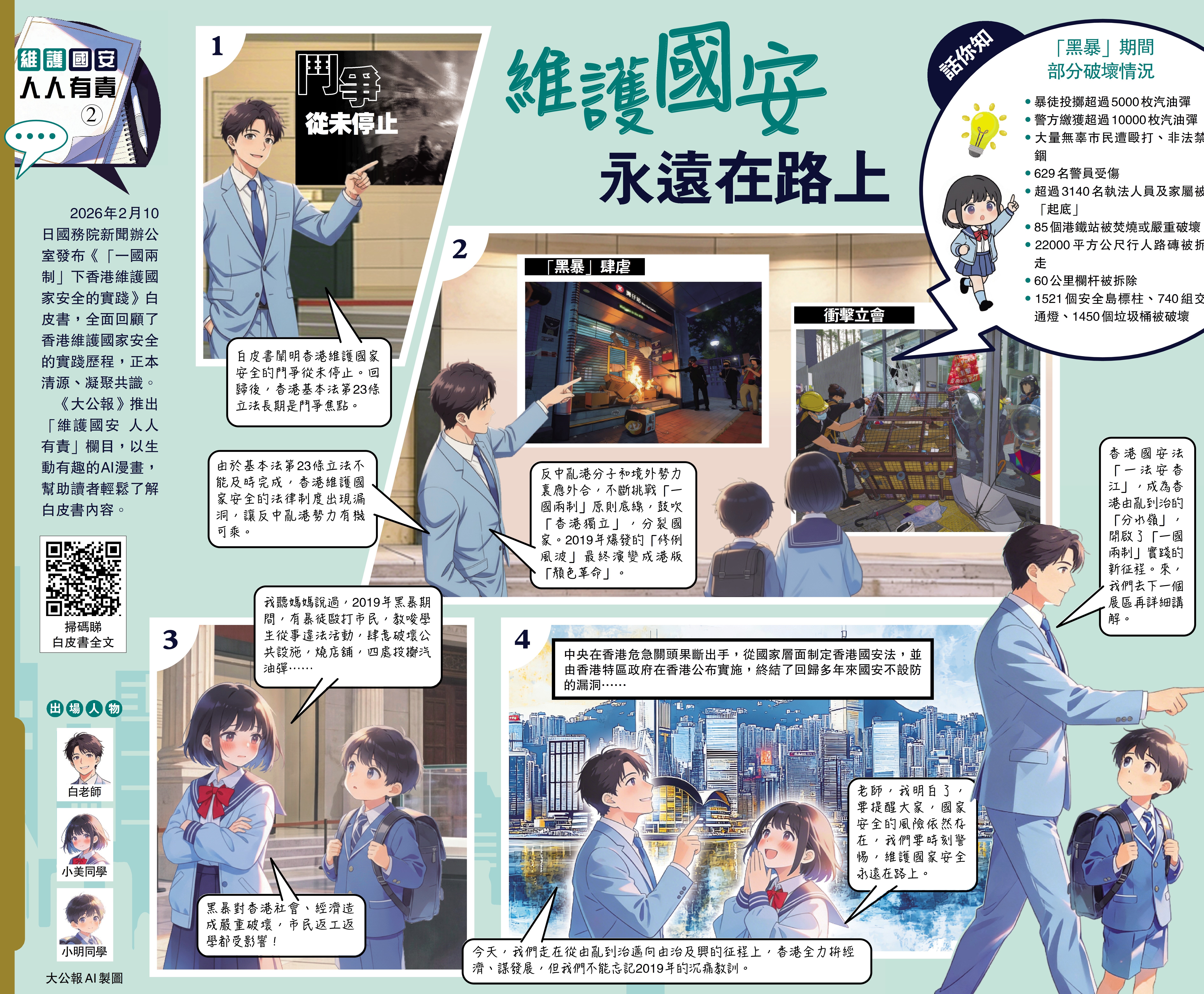 《大公報》推出「維護國安 人人有責」欄目,以生動有趣的AI漫畫,幫助讀者輕鬆了解白皮書內容。