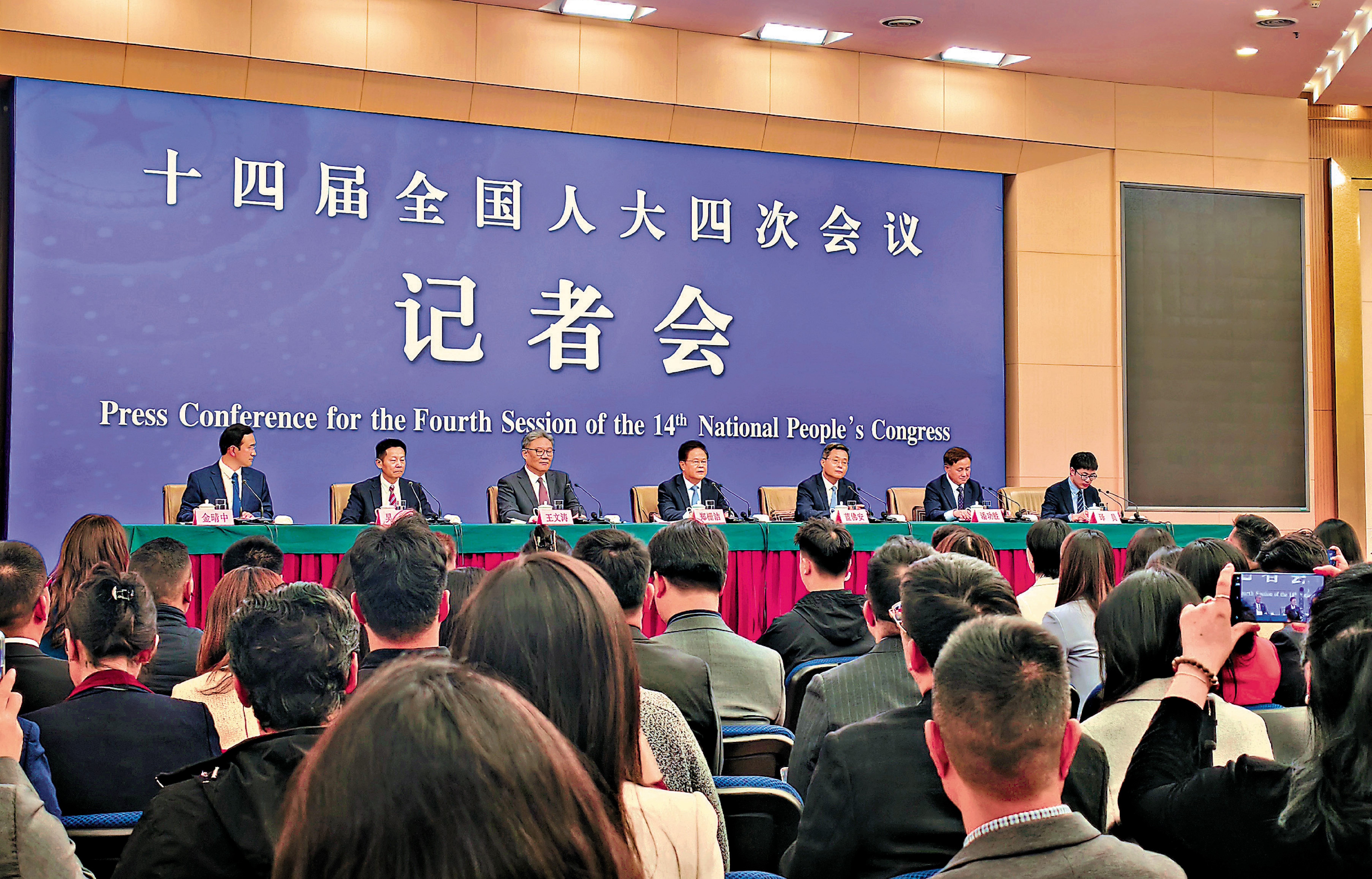 十四屆全國人大四次會議經濟主題記者會6日在梅地亞中心舉行。國家發改委、財政部、商務部、央行、證監會五部門一把手齊聚,就發展改革、財政預算、商務、金融證券等相關問題回答中外記者提問。
