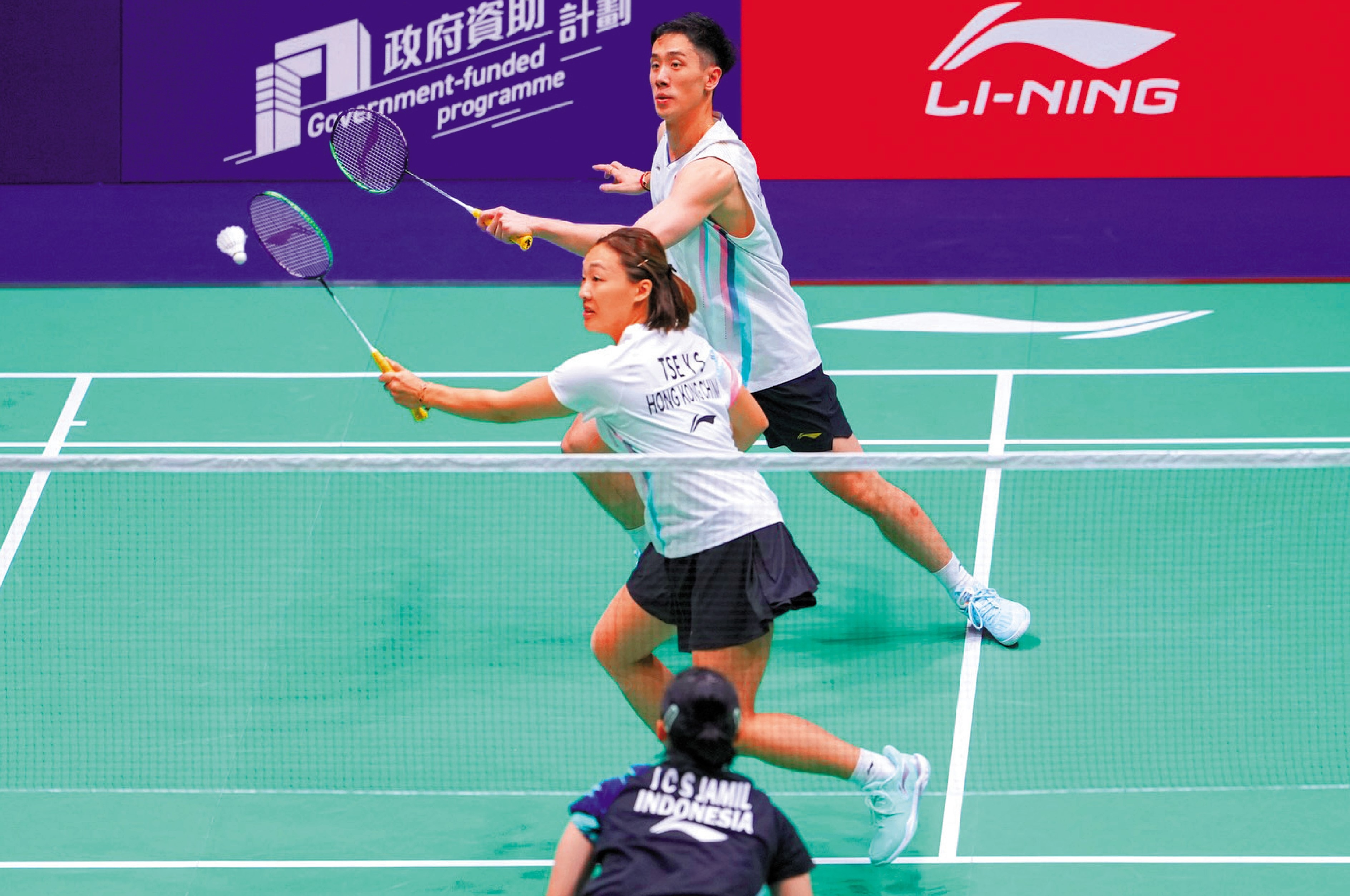 昨仗初段,「鄧謝配」開局即採取主動,首局雙方多次平手,戰至19:19平手時,港將把握機會連取兩分,以21:19先拔頭籌。第2局繼續較量,「鄧謝配」領先9:8之際,印度男將卡比拉因傷決定退賽,讓港隊組合提早鎖定8強席位。
