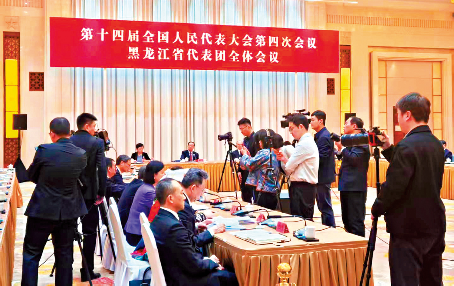 3月7日,十四屆全國人大四次會議黑龍江代表團開放團組會議現場,一個細心舉動,讓在場的中外記者心裏一暖。工作人員見記者拍攝受阻,當即主動撤下圍欄,讓記者與代表實現「零距離」接觸,盡情拍攝,捕捉更多生動細節,角度更加豐富多元。一道圍欄的移除,成為兩會開放透明鮮活的註腳。