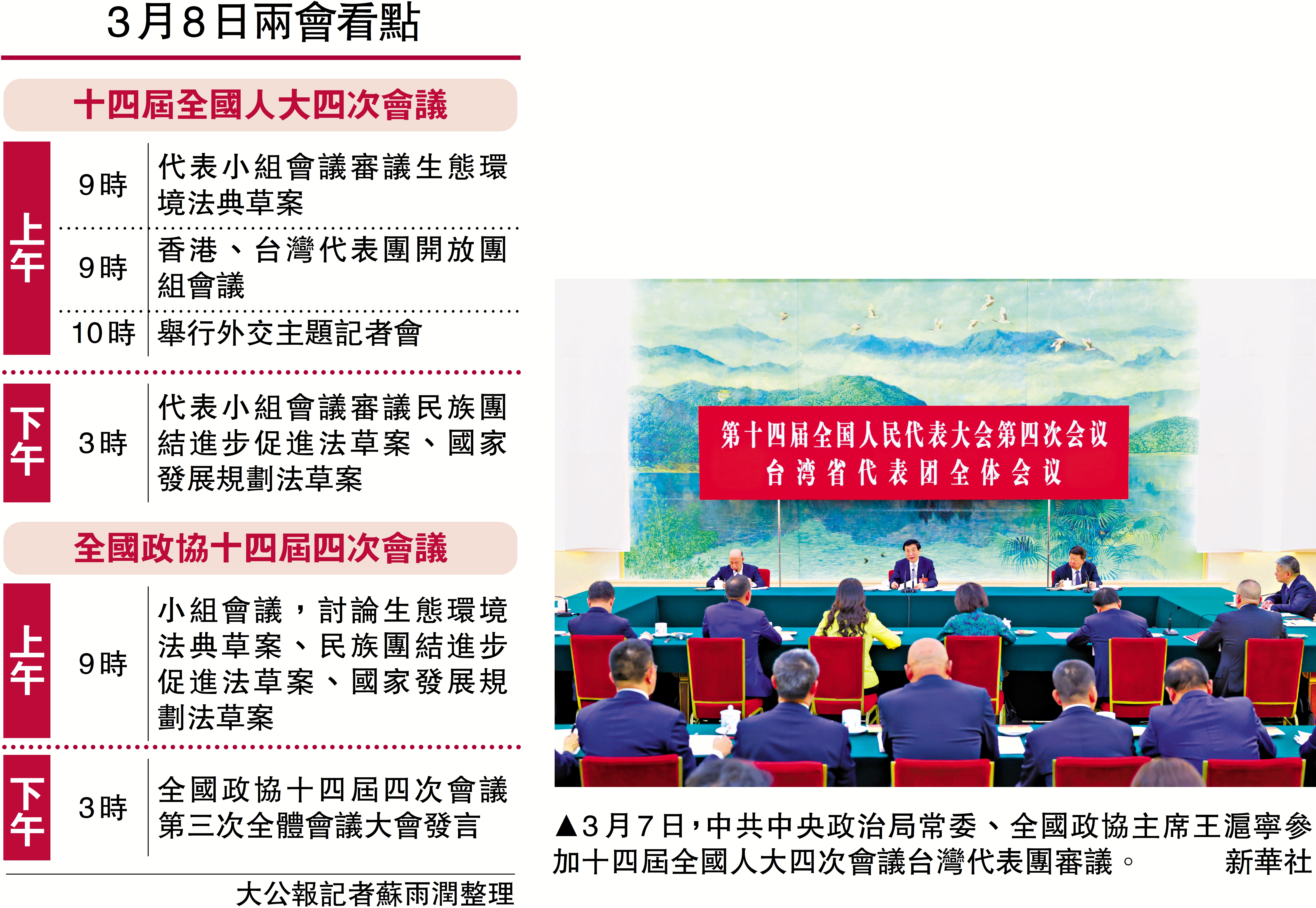 【大公報訊】據新華社報道:中共中央政治局常委、全國政協主席王滬寧7日參加了十四屆全國人大四次會議台灣代表團審議。