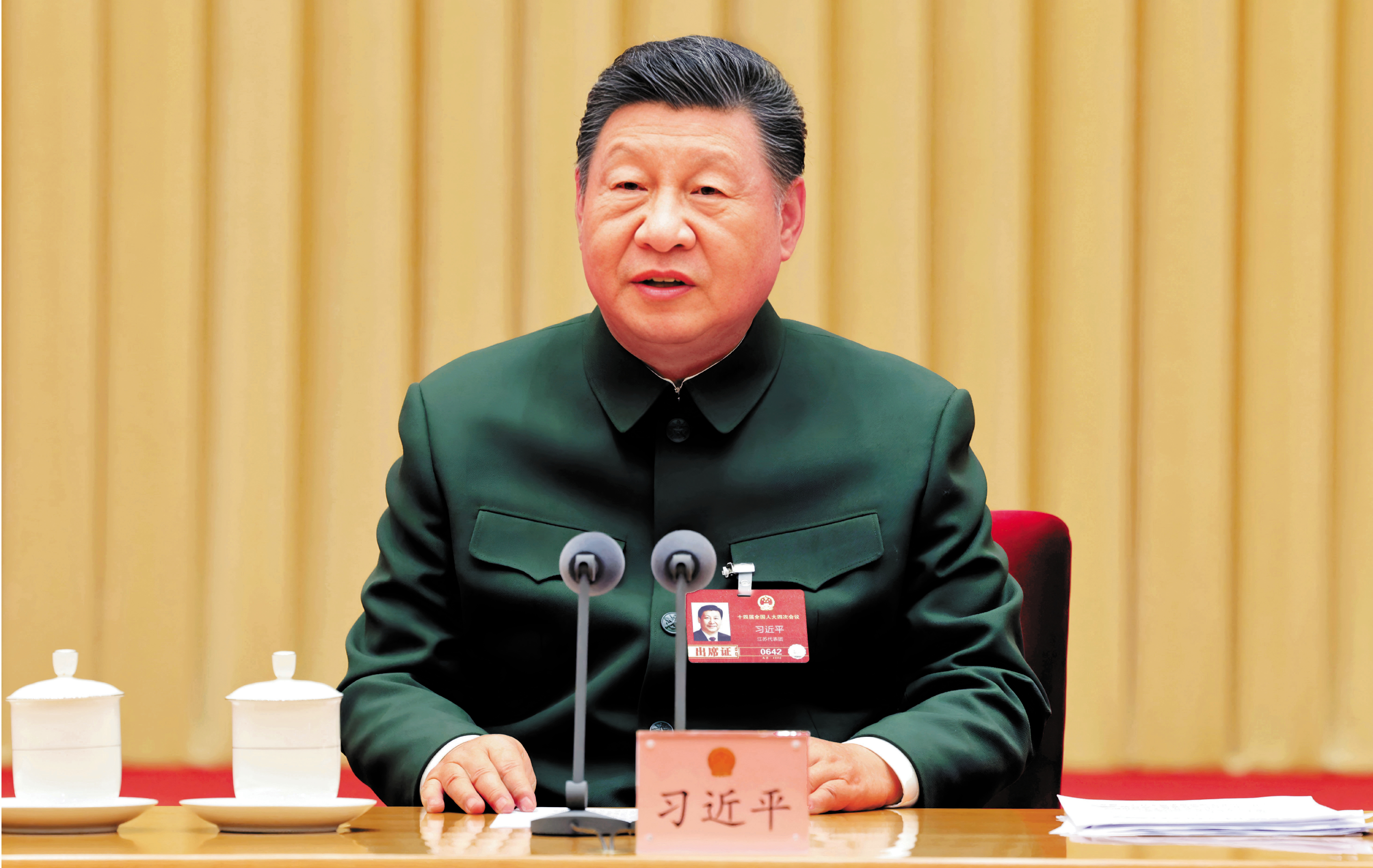 中共中央總書記、國家主席、中央軍委主席習近平7日下午在出席十四屆全國人大四次會議解放軍和武警部隊代表團全體會議時強調,「十五五」時期要如期實現建軍一百年奮鬥目標、高質量推進國防和軍隊現代化,必須堅持好、運用好、發展好政治建軍這個重要法寶,毫不動搖堅持和加強黨對軍隊絕對領導,充分發揮政治建軍特有優勢,凝心聚力推動國防和軍隊現代化行穩致遠。