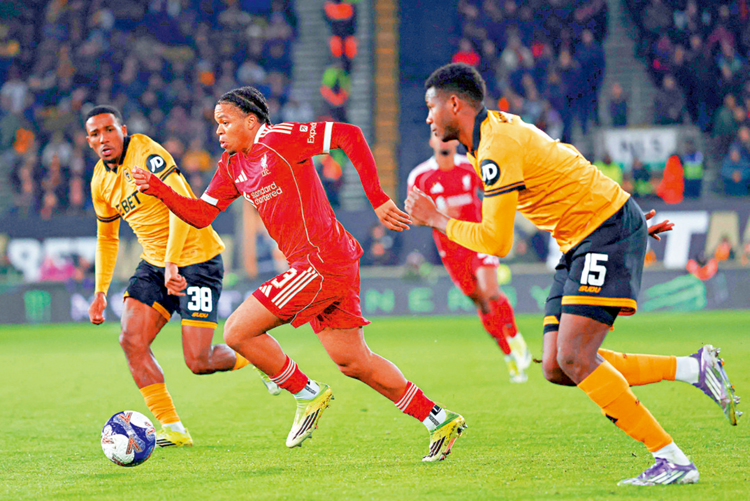 【大公報訊】記者譚德龍報道:4天內兩度作客狼隊的利物浦,成功報回英超落敗之仇,香港時間7日凌晨英格蘭足總盃16強憑下半場連入3球,以3:1淘汰主隊而躋身8強;因背傷已缺陣3仗的進攻中場科利安華迪斯,今場後備復出,在下周二歐聯作客土超加拉塔沙雷之前,利物浦就以贏波晉級加主將復出來提振聲勢。