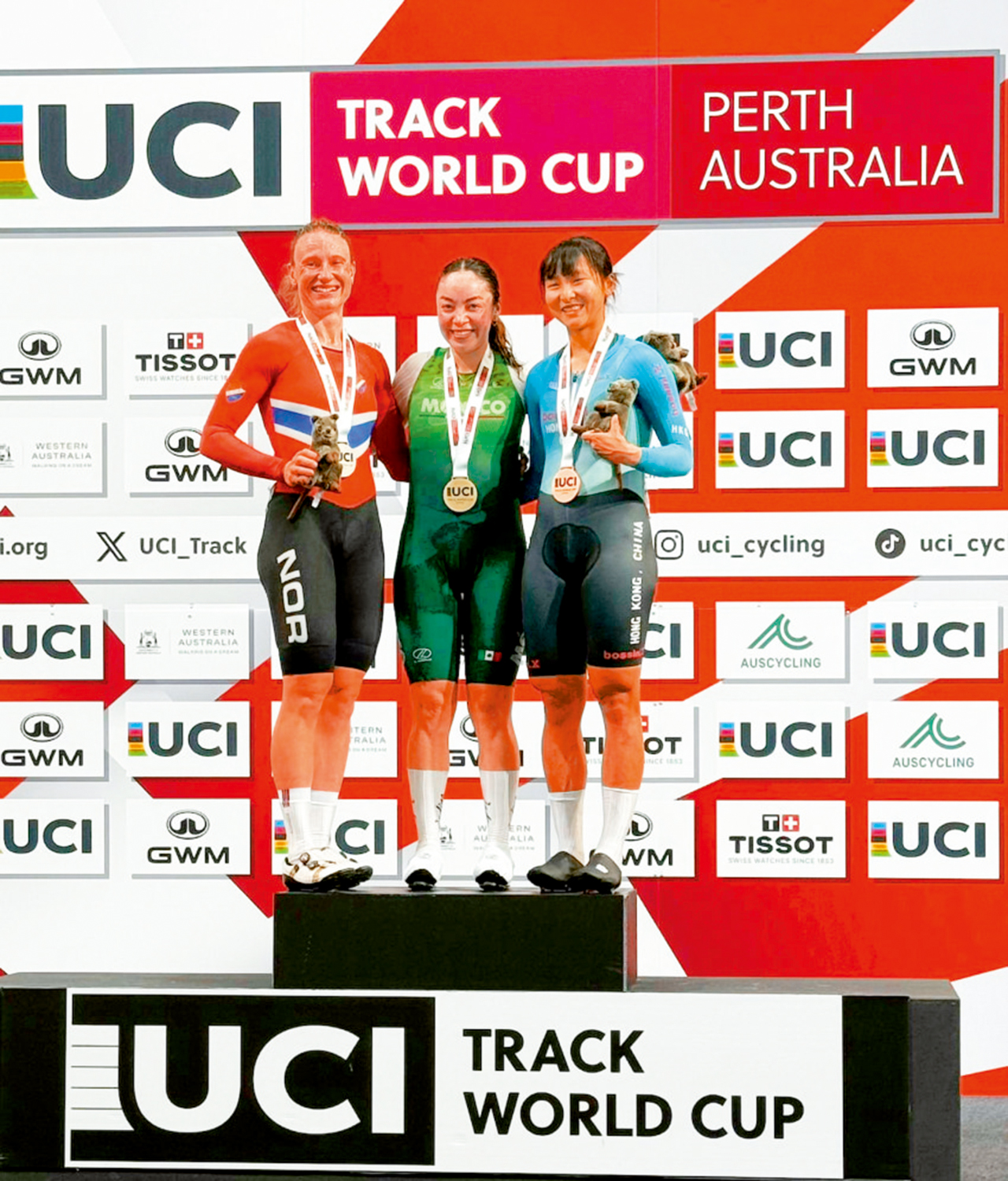 6日在澳洲珀斯展開的新一屆場地單車世界盃賽,中國香港代表隊首天即取得突破成績,李思穎在女子淘汰賽取得銅牌,是她單車生涯的首枚世界盃獎牌。另外港隊在男子團體追逐賽上,也歷史性拿下一枚世界盃銀牌。