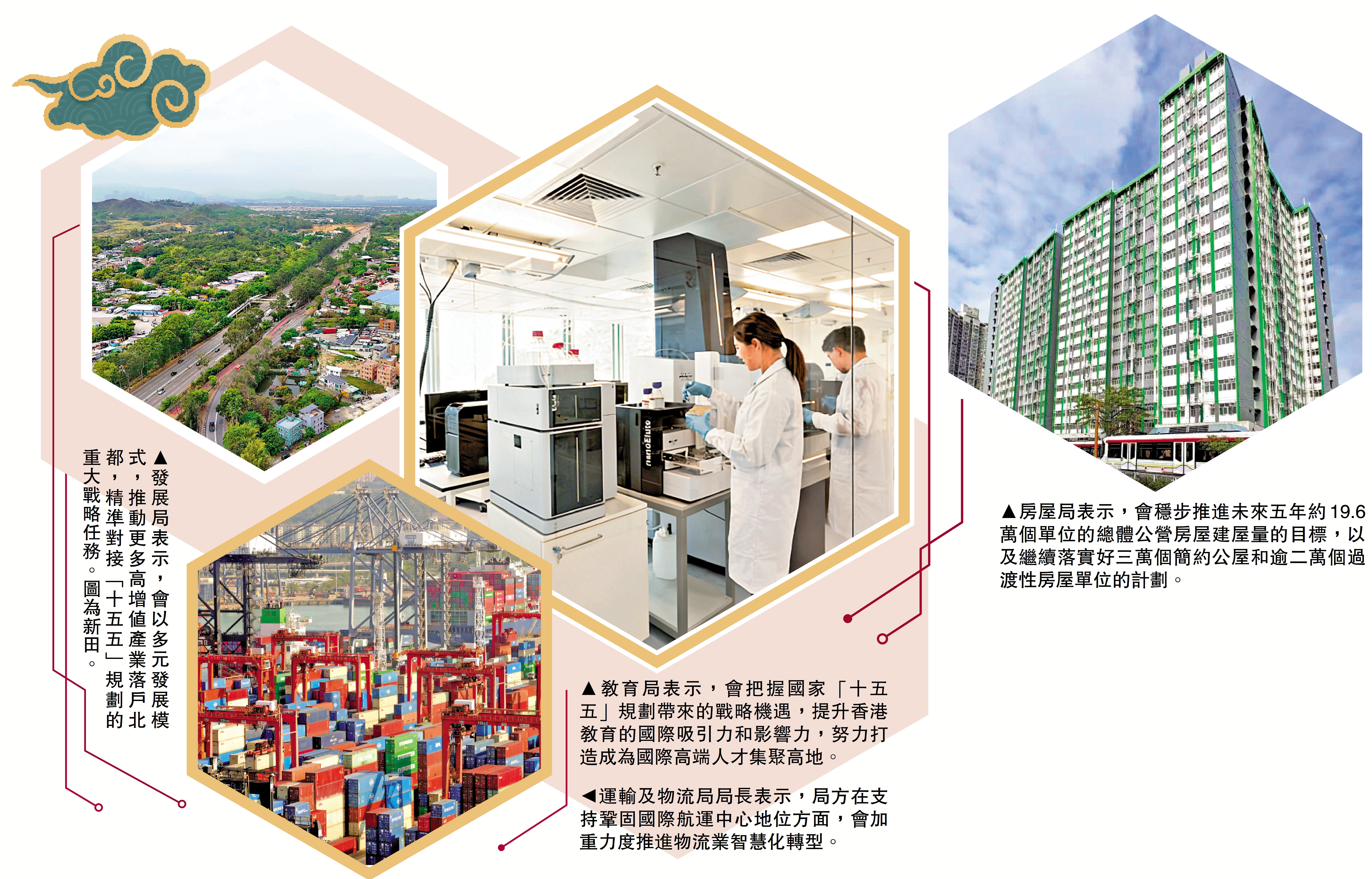 全國兩會正在北京召開,香港特區15個政策局局長表示,特區政府積極主動對接國家「十五五」規劃,在行政長官的帶領下,正加緊籌備制訂首份香港五年規劃,全力發展經濟、改善民生,發掘新的增長點。