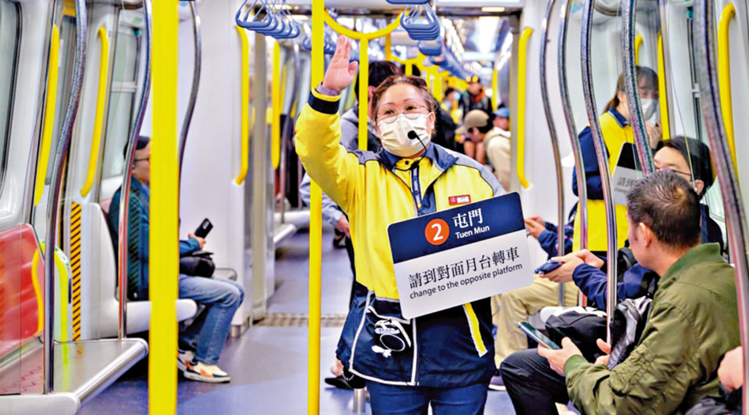 《大公報》記者昨日在紅磡站觀察,乘客不太習慣行車方向調轉。車站大堂、東鐵綫月台連接屯馬綫扶梯均有職員主動協助。每道車門都有工作人員舉牌提示,列車到站後,工作人員主動行入車廂內提醒乘客需落車轉乘,整個安排大致順暢。